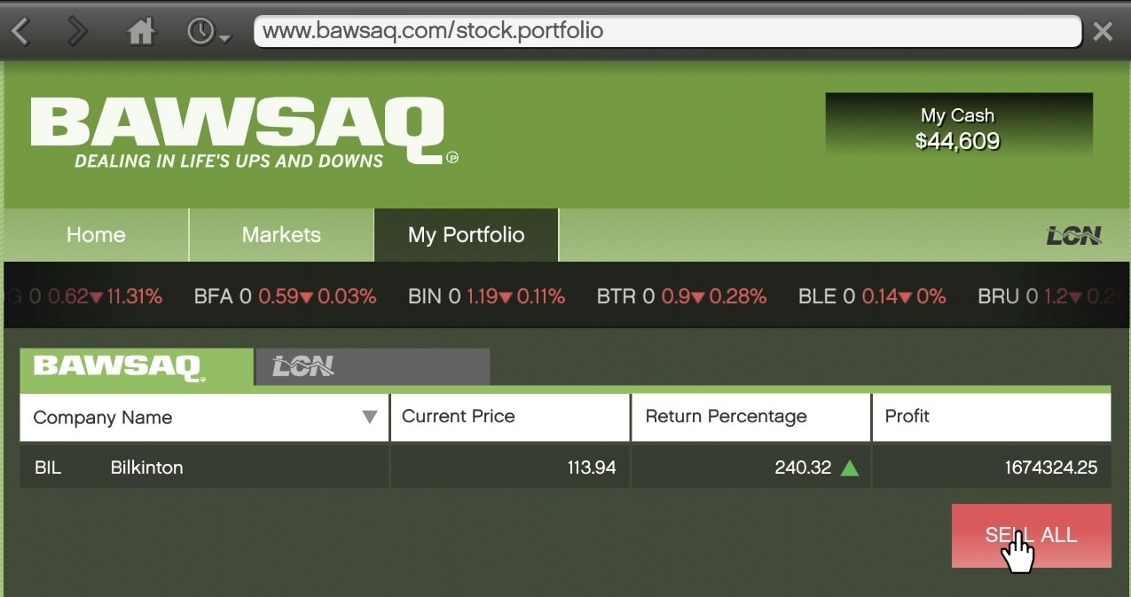 The Dollar Pills stock is an alternative, in case the player is unable to access the Bawsaq site, just do as explained above and you should get a percentage of return of 100% with the Dollar Pills.