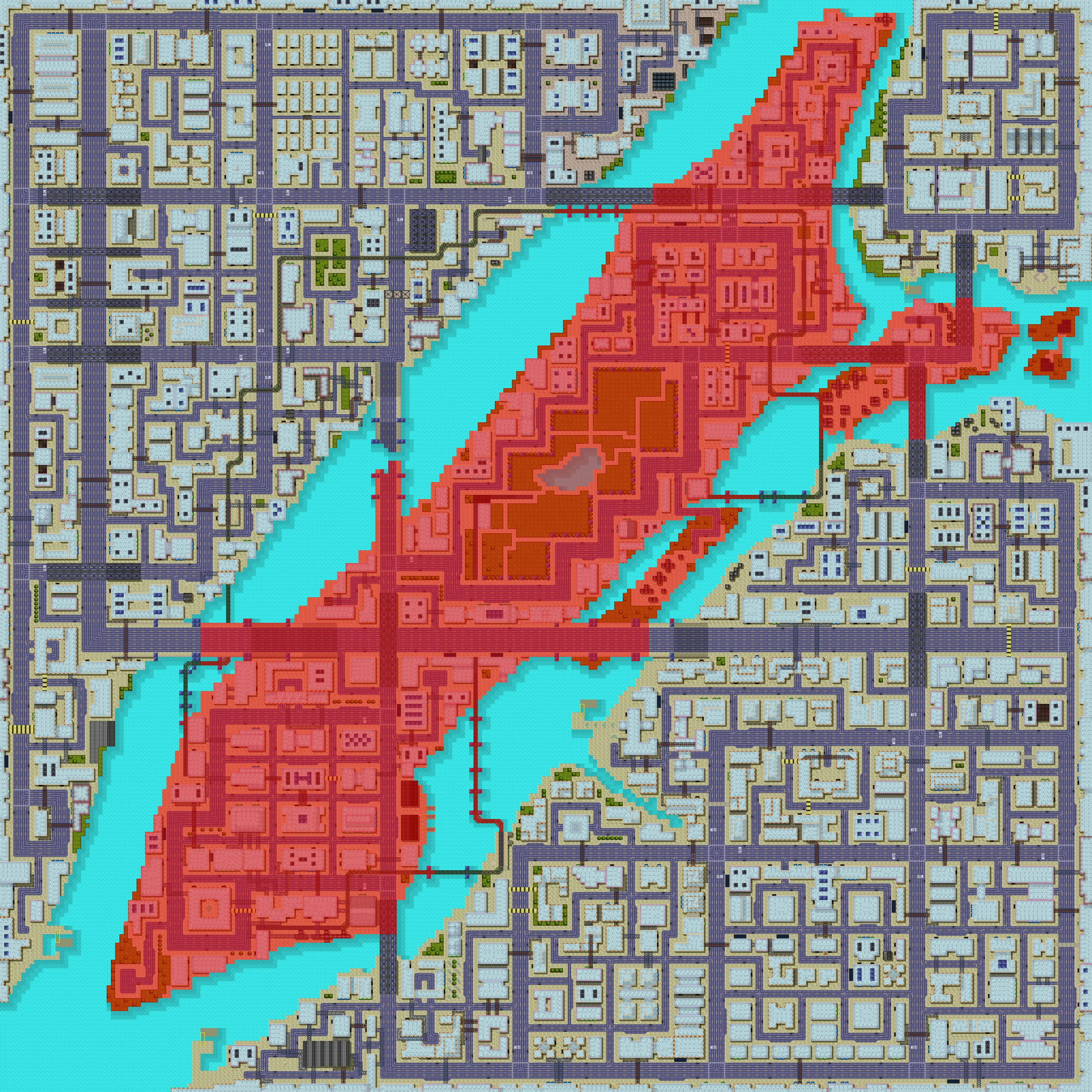 Liberty Island is based upon real life Manhattan, consisting of a high-rise downtown in the south area, a high-rise Midtown in the north. Liberty Island has six neighborhoods, including the two smaller islands. It was founded in 1603[1]