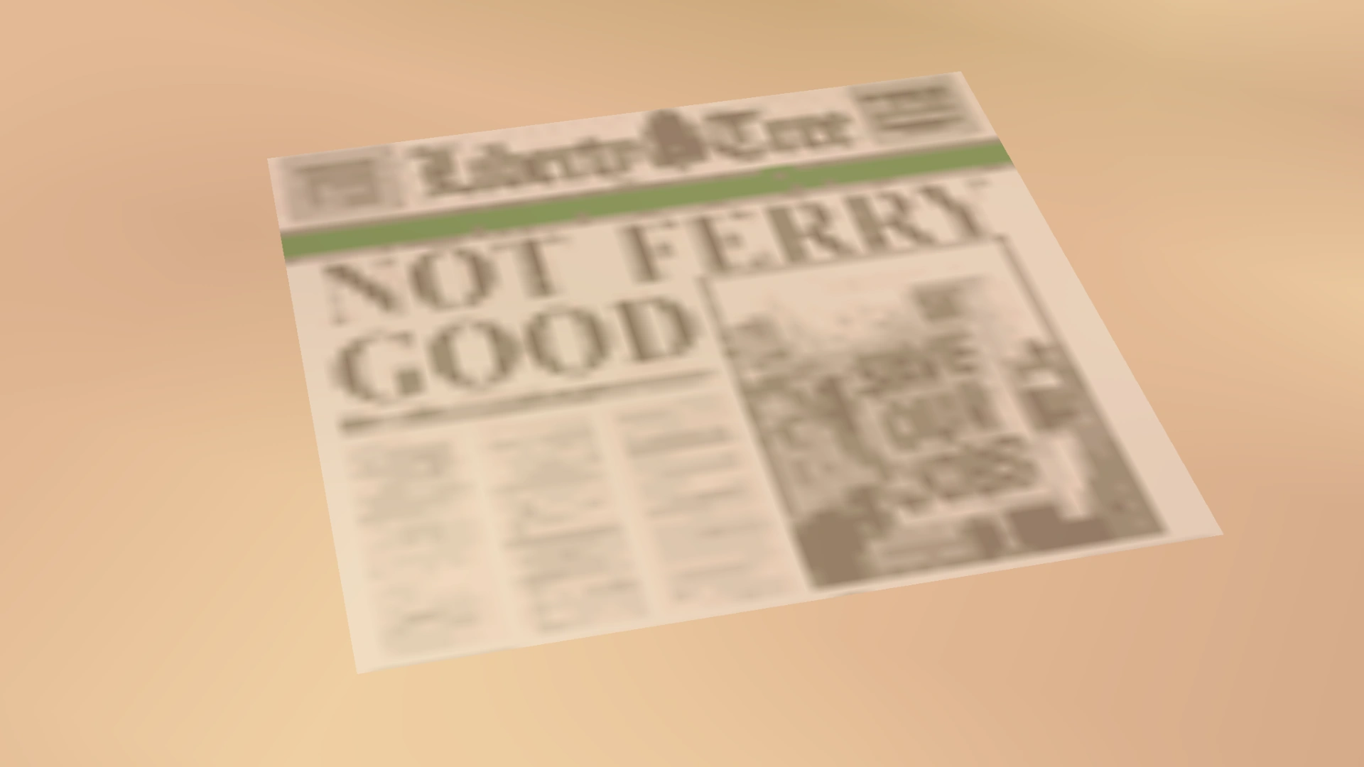 Illegible "Not Ferry Good" news story related to the ferry strikes, found as litter in Grand Theft Auto: Liberty City Stories.