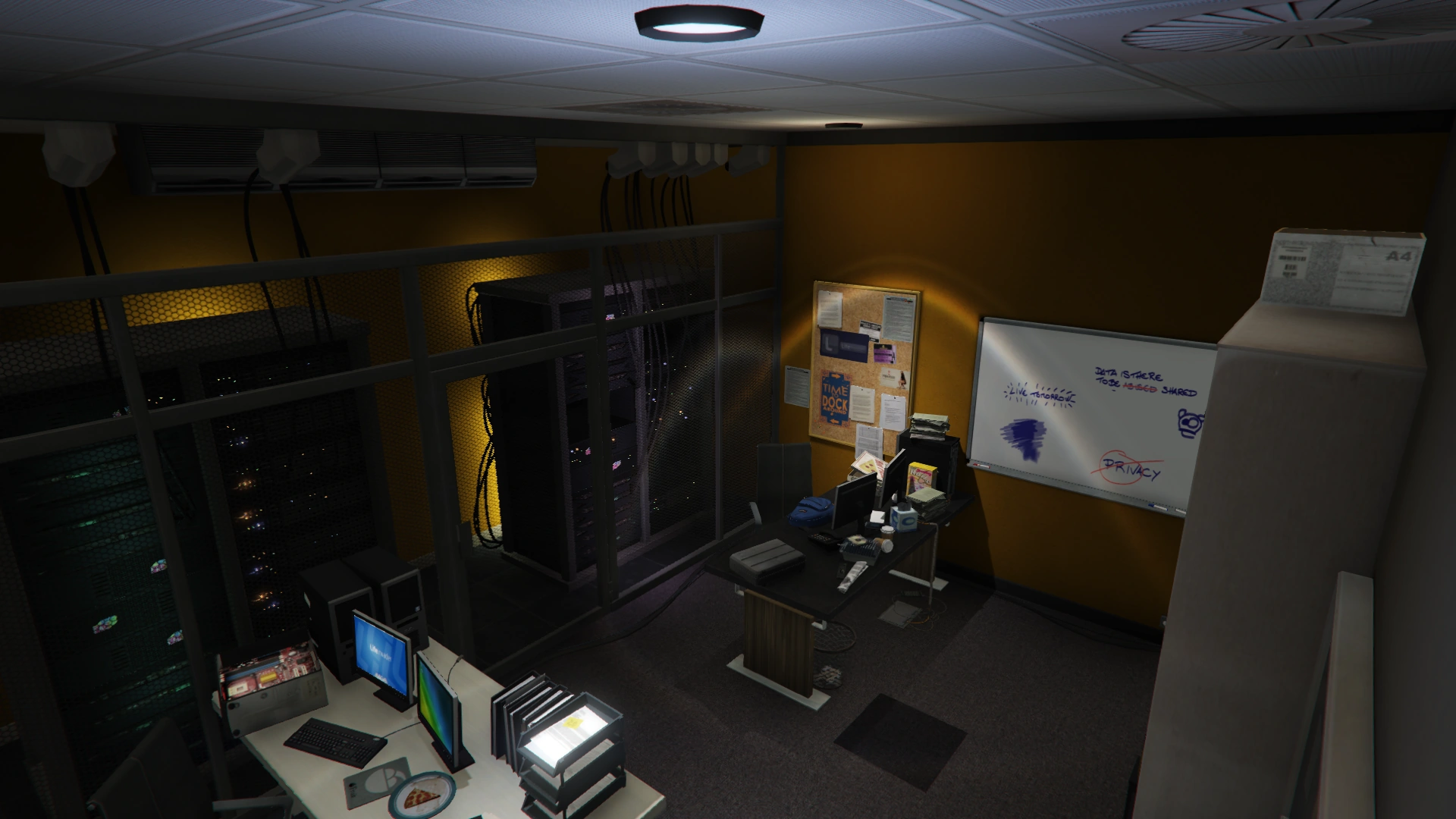 - Targeted Data – The protagonist has to park their Terrorbyte on the north side of the building, then send a drone inside to hack two computer terminals in order to determine the location of a target to assassinate. During the mission, the player can explore two floors and several offices with the drone, or on foot though the latter triggers attacks from security guards and a wanted level.