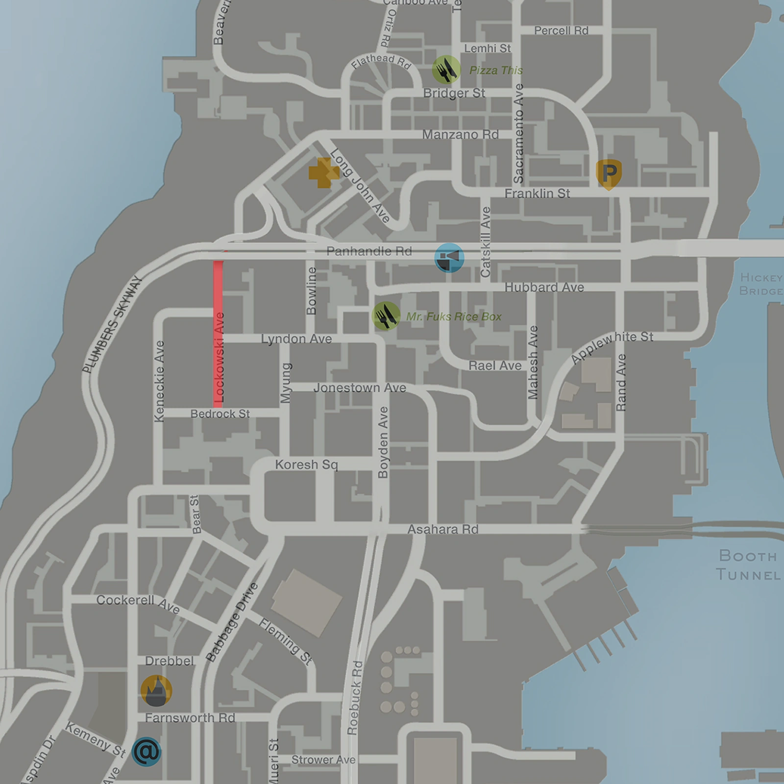 Lockowski Avenue is a two-way street in Grand Theft Auto IV and Episodes from Liberty City, located in Alderney City, Alderney. The street begins on Manzano Road and Panhandle Road, and ends on Bedrock Street.