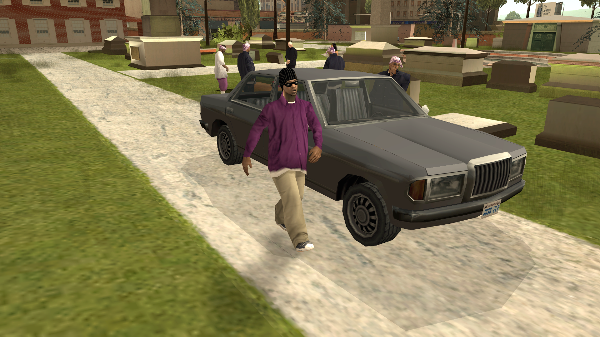 After the cemetery has been swept, CJ must get into the car Sweet fetched and drive himself and the crew back to Grove Street in one piece.