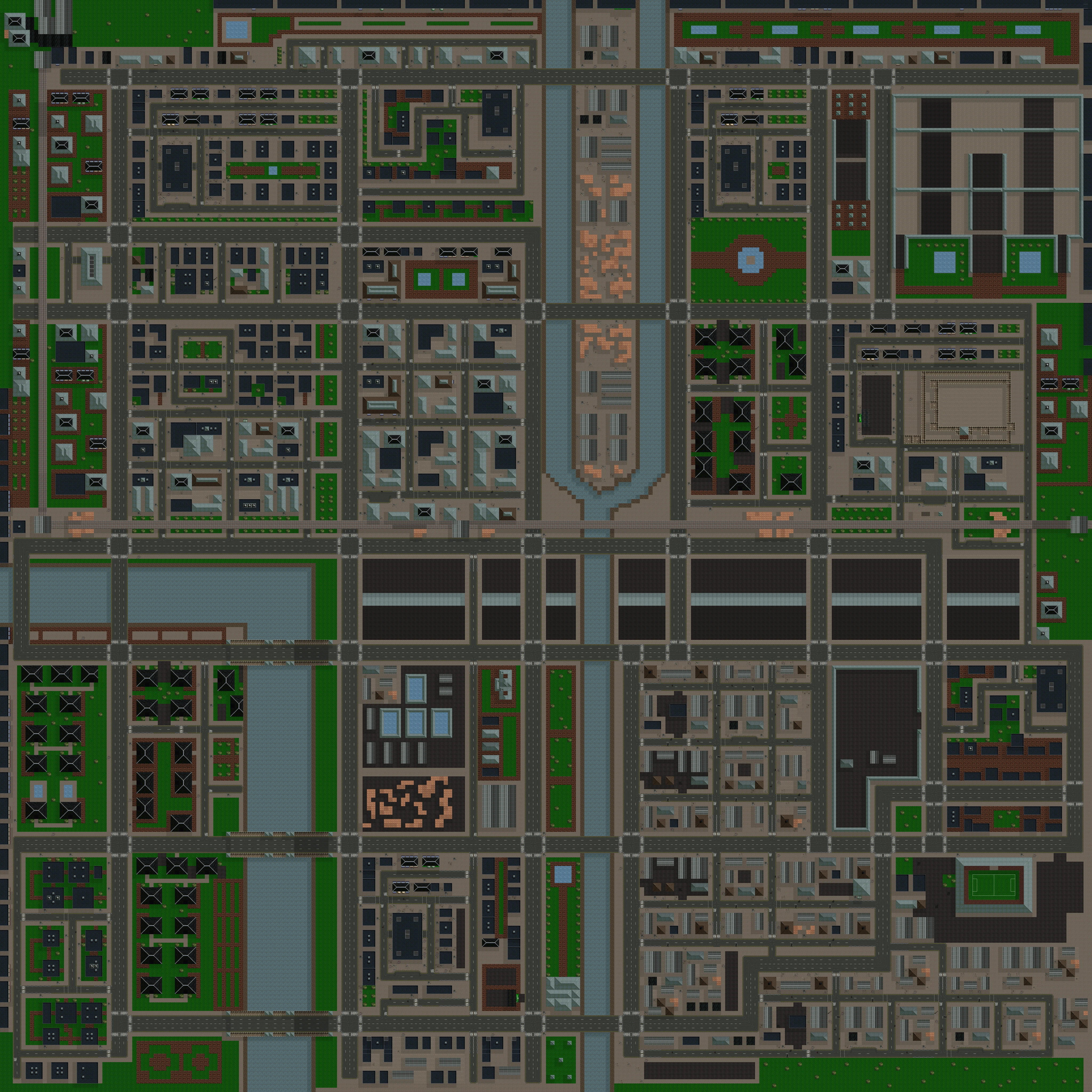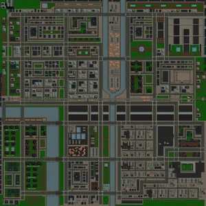 The city's main feature is its canal network, which includes one river to the southwest, a dry canal that runs from the river to the eastern edge of the map, and a Y-shaped waterway that runs from north to south, complete with adjoining dockyards, warehouse and cargo holding areas. These characteristics mimic Manchester's shipping canals and docklands; the southwestern river may also be based on the River Irwell.
