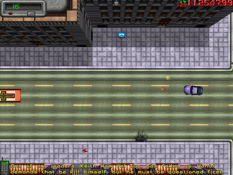 Immediately after dealing with Uncle Fu's former law firm, the protagonist receives word that one of the leaders of Uncle Fu's Crime Syndicate, Keith Ham Yel Tun, has failed them and that honour dictates that he must kill himself. The protagonist is tasked with getting to Keith before he can go through with the deed so that he can be questioned. Keith is located on the roof of a building in southwest Aye Valley and the protagonist has 3 minutes to get to him before he throws himself to his death. After getting to Keith, he reveals that he has hidden the missing elements of GTA: the Humour in west Telephone Hill, the Gameplay in northeast Wood Hill, the Fun in southwest Woodside and the Sweary Words in central Sailor's Wharf. Keith will then jump off the roof to his death, leaving the protagonist to hunt down the four briefcases. Once all four have been collected, the mission is complete.