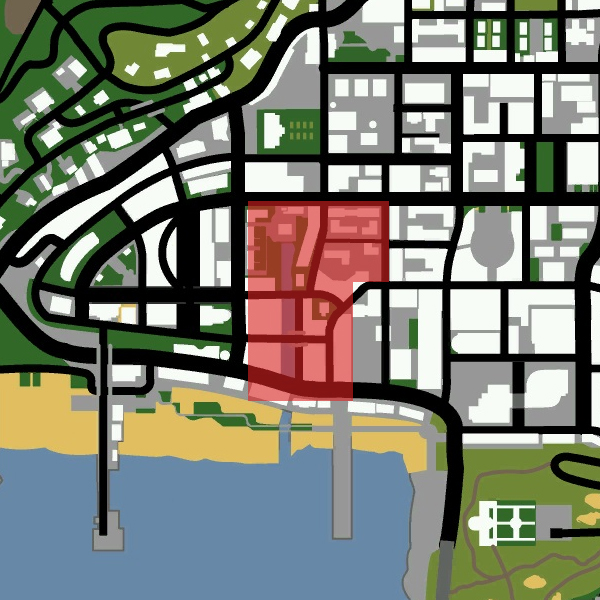 Marina is not controlled by any gang, although surrounding districts like Santa Maria Beach and Verona Beach have prominent gang activity, and as a result may also spawn in this district. The commercial districts of Vinewood (north), Market (east), and Rodeo (west) also envelop the area.