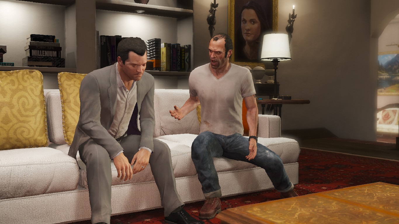 "Michael, to me, is... Who is he? I know who he is. I'm just trying to... He's the person who is trying to ignore some rather large mistakes that they have made. The person who's trying to forget about certain practical but still selfish decisions that they took. He's a man, also obsessed by images and by appearances, and who, when the world doesn't live up to those images and appearances, doesn't know what to do. He just retreats into his head. What he also is, when we started out... What he kind of evolved into as we began thinking about him and developing him... He was the first character we came up with. He began as the idea of what happens to a regular GTA protagonist after they retire? Then you think, what would make him retire? He's a man with a big ego and plenty of good values and plenty of bad values."