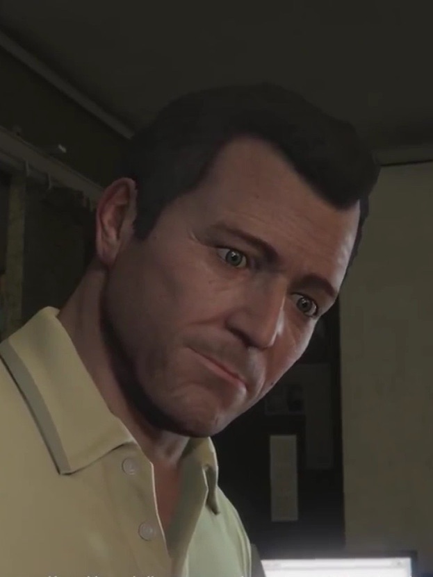 Michael is a former bank robber and career criminal who faked his death to retire and live a peaceful life with his family in Los Santos. However, his unhealthy relationship with them takes its toll, and he soon gets pulled back into his criminal life, forcing him to return to his old ways. Michael's story centers around how his seemingly idyllic and halcyon lifestyle is halted as his past demons and morally dubious lifestyle choices come back to haunt him.