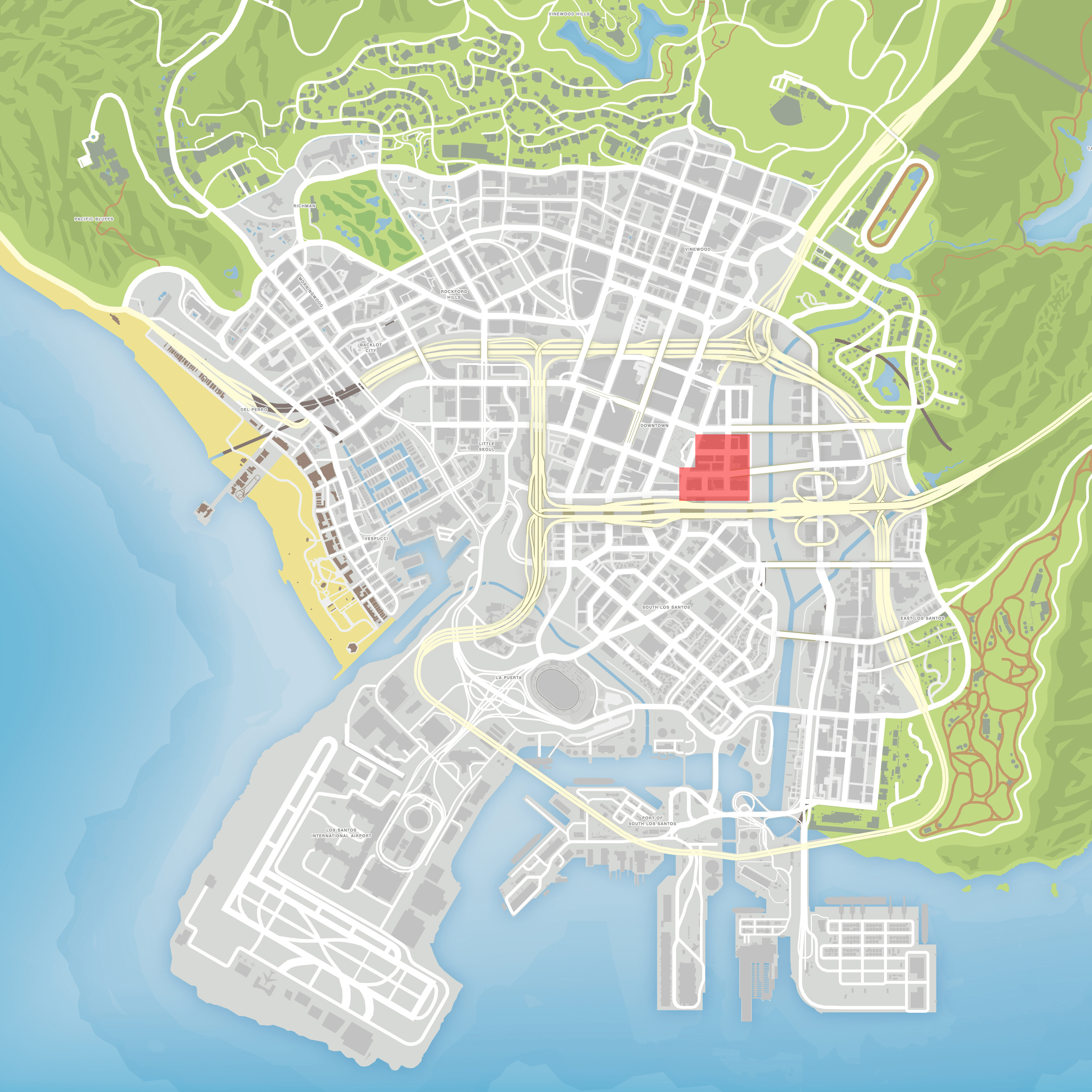 It borders Textile City to the north, Strawberry to the south, Legion Square and Pillbox Hill to the west, and La Mesa to the east. It is based on the real-life neighborhood of Skid Row, in Los Angeles.