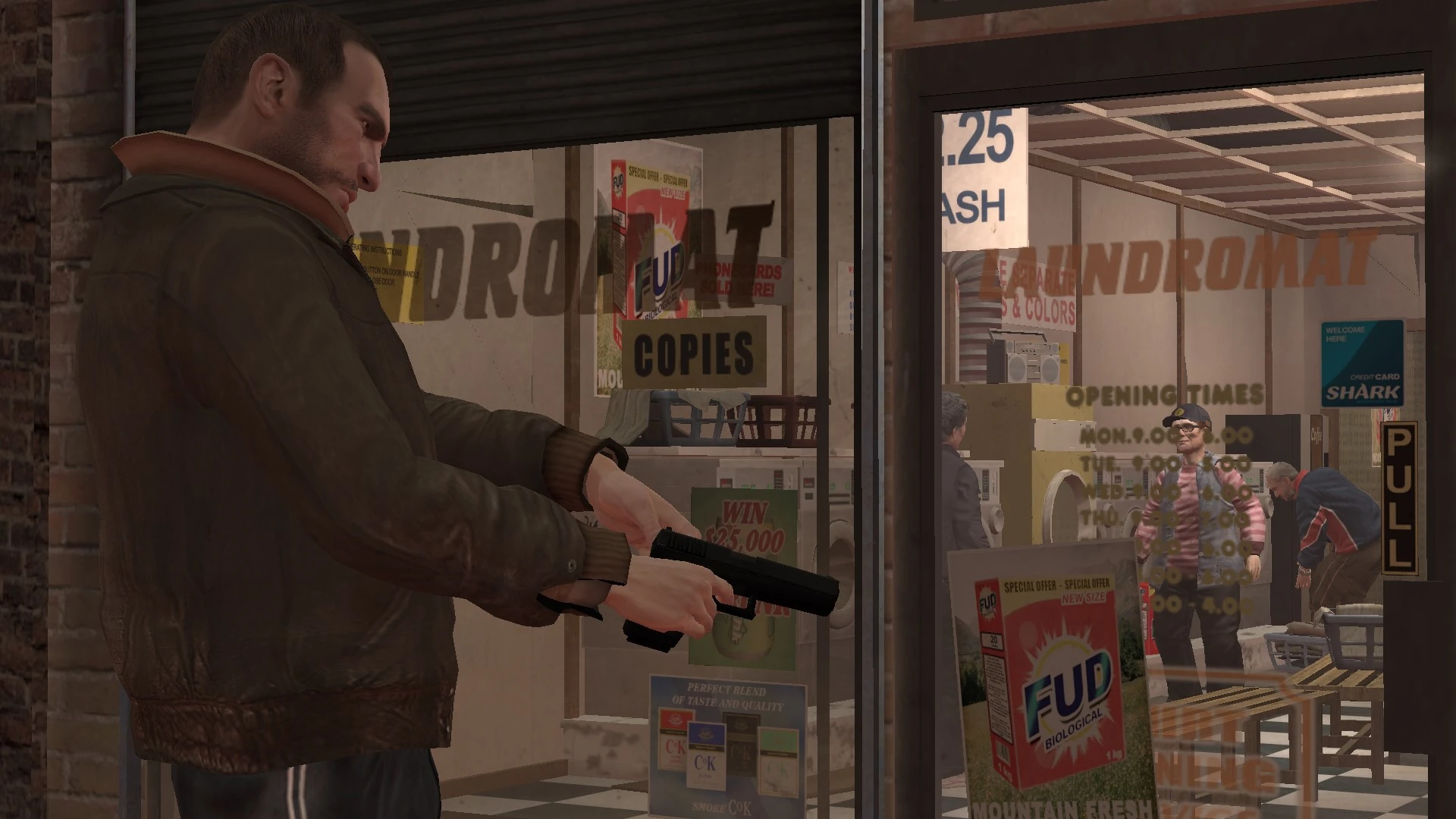 Threaten Joseph Kaplan at a sex shop, reclaim the money and go to the gun shop to receive a gun after leaving or killing Joseph. | |