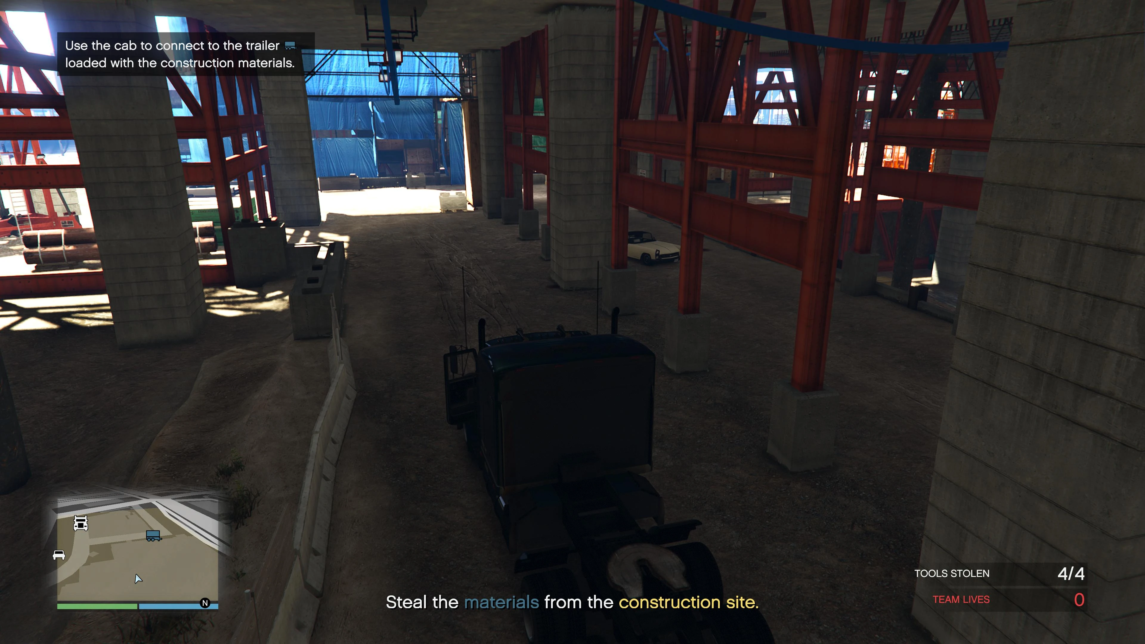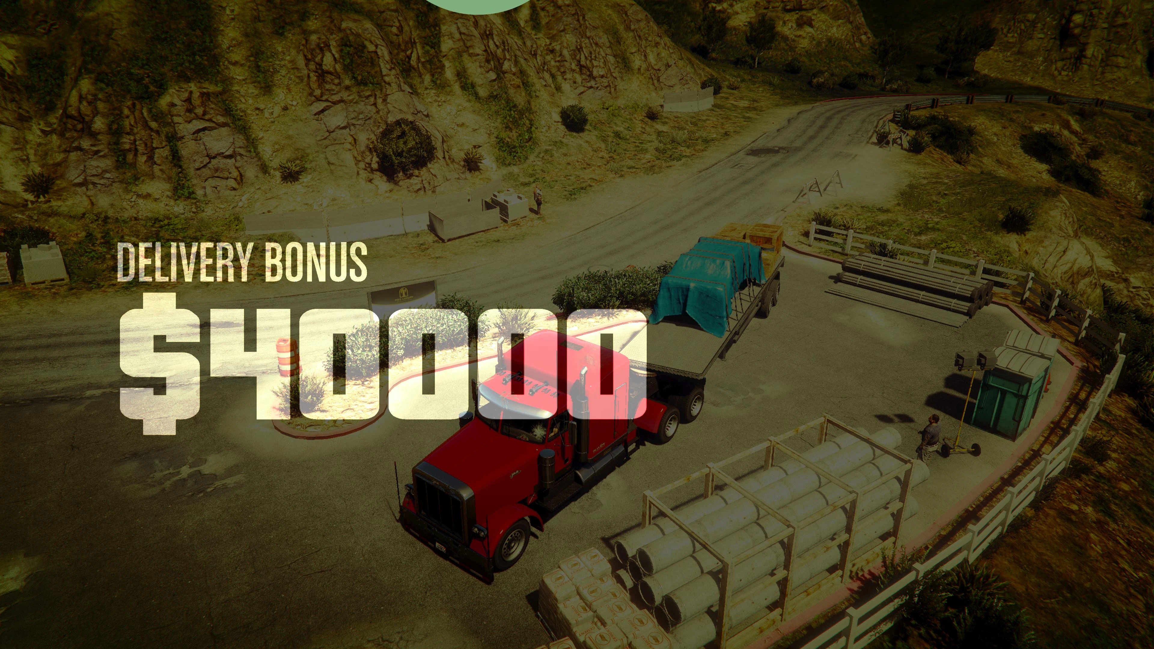 The player must deliver the materials and all four tools while keeping the truck's health above 75% for an extra cash bonus.