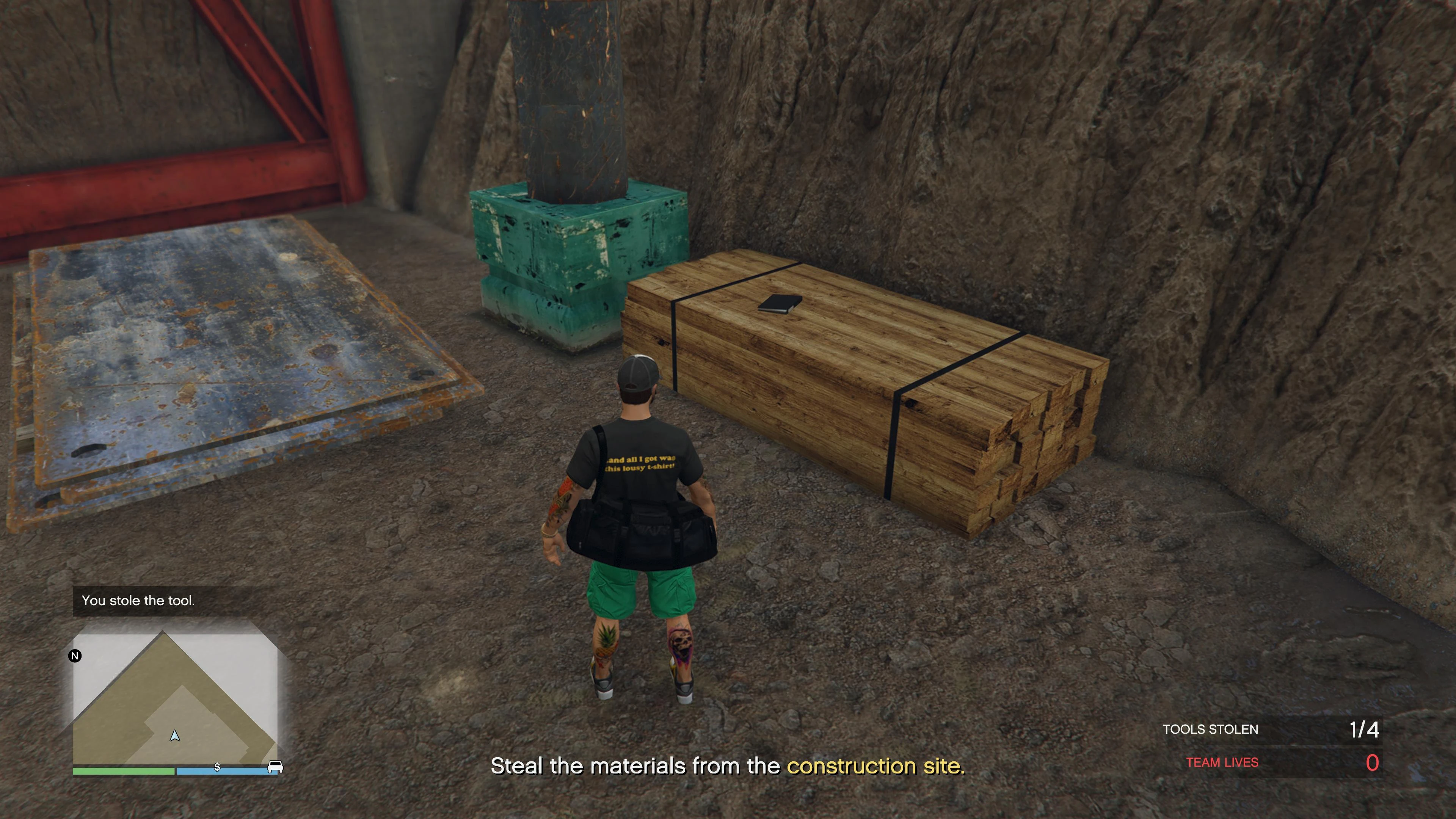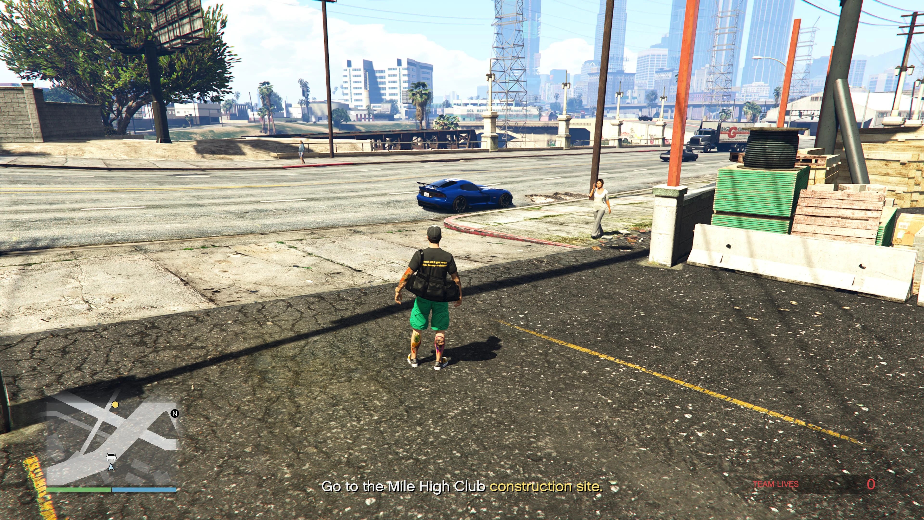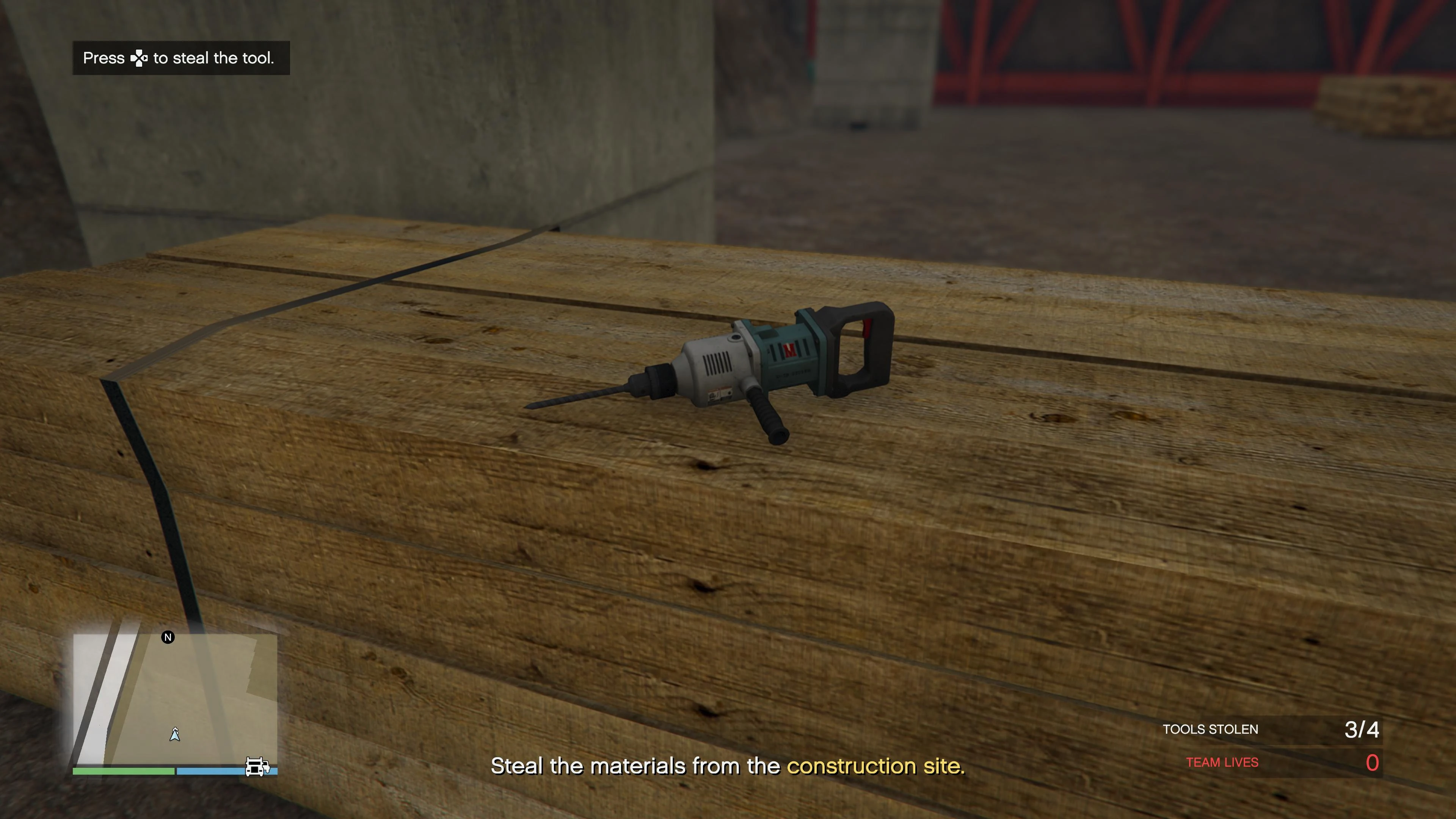 After starting the mission, Raf will tell the player to head over to the Mile High Club construction site. When the player arrives, they need to sneak into the area and avoid the enemies while looking for tools.