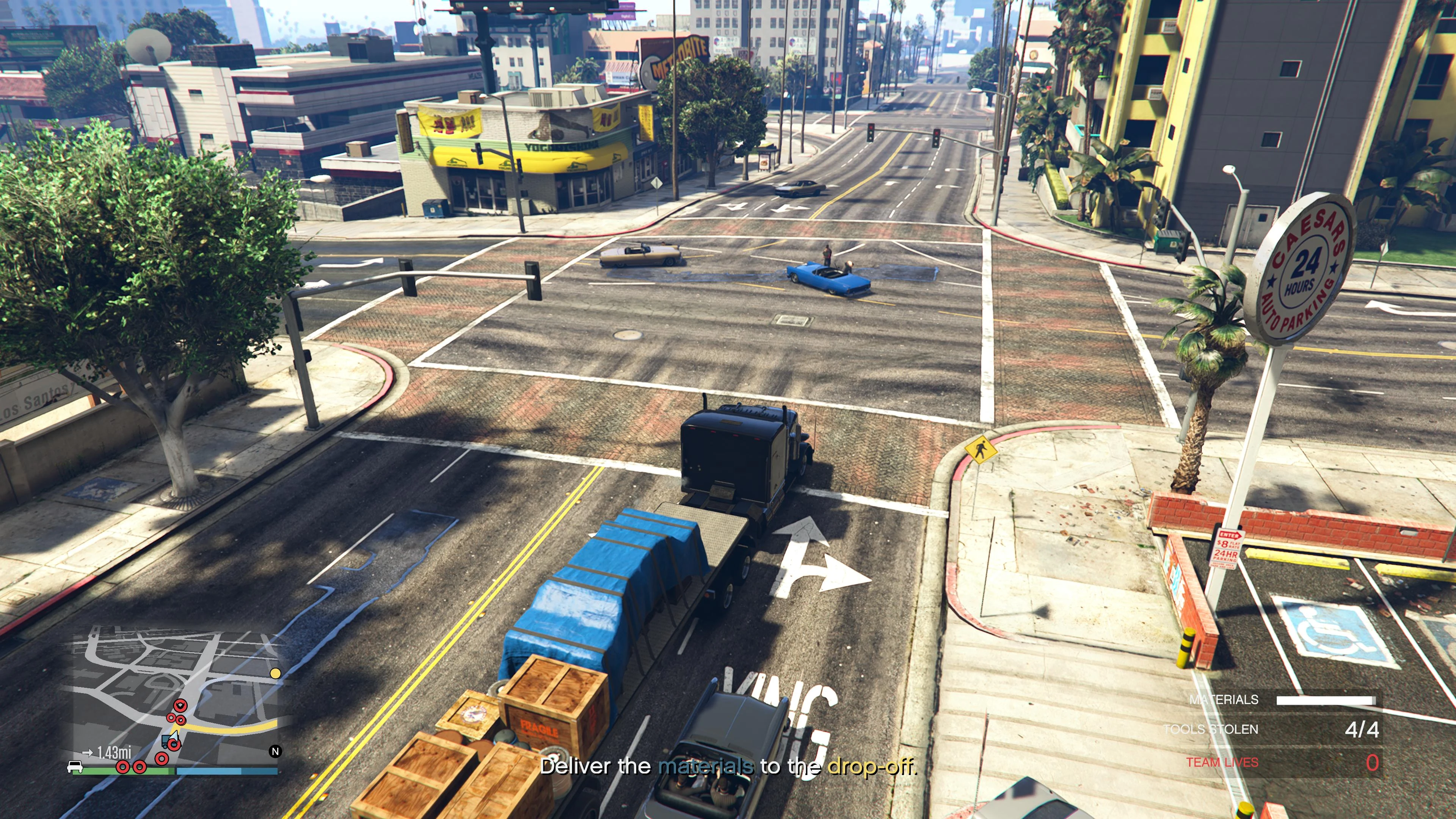 Listen, I'm gonna be super straight with you. The guys we're using to renovate the properties, they're not exactly legitimate. But, hey, this is Los Santos. No shit, every construction company's mob endorsed. So, listen, you don't gotta feel bad about, y'know, stealing a load of materials from STD's site. It saves us money, keeps our guys happy and, meh, I mean, have you seen how long they've been working on that complex? Fuck 'em.”