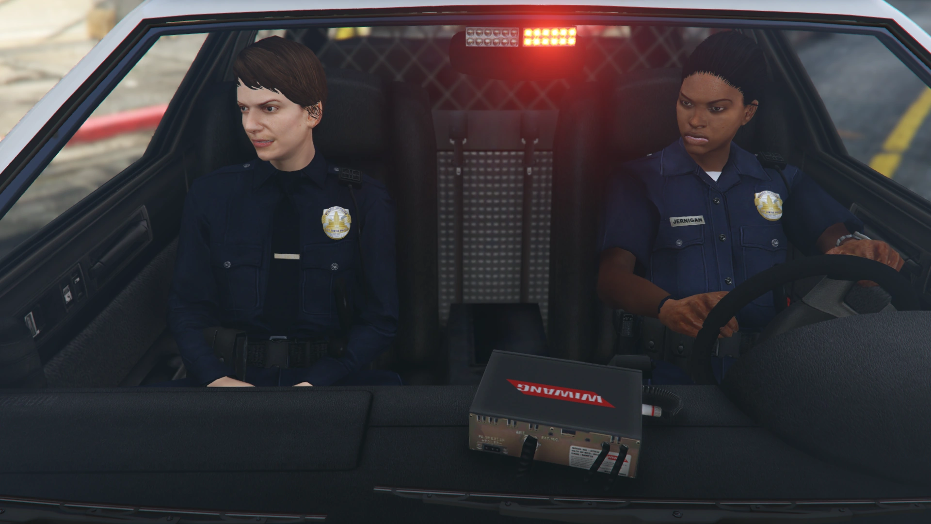 Officer Jernigan is a female police officer who works for the Los Santos Police Department in the city of Los Santos that can usually be found at the Mission Row Police Station in Los Santos. Her rank is a police officer I as she has no stripes on her uniform.
