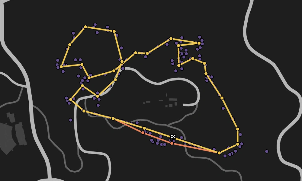 The race takes place above Vinewood Hills. It starts on the pit straight facing east. Once the race commences, the players race down the remainder of the straight, around a sweeping left-hand corner, and down another straight. After this, drivers are met with a right-hand kink, a left-hander, and two tighter right-hand corners, followed by a left-hand hairpin turn.