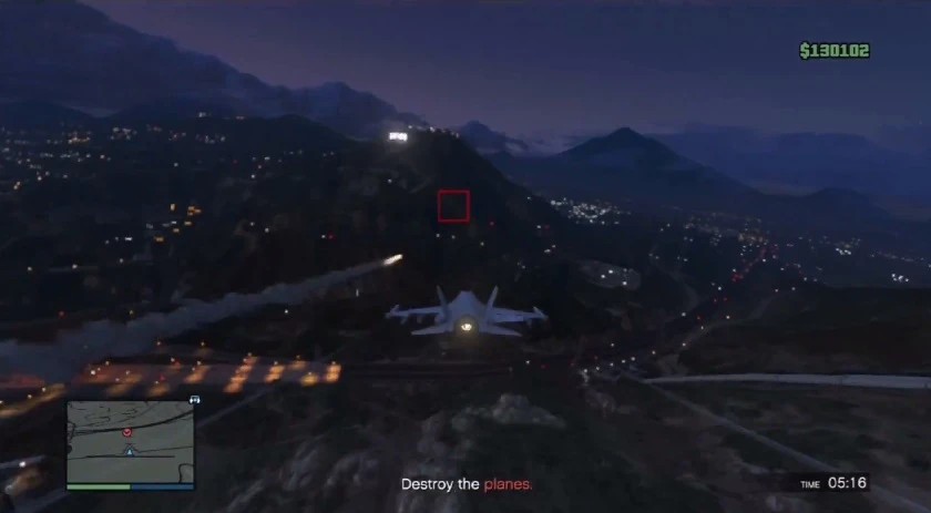 - Lazers appear in the Mobile Operations mission Cover Blown, as an attempt to destroy the crew's Mobile Operations Center. They do not seem to directly attack the vehicle, as these perform air strikes, in a similar manner to Merryweather jets the player calls for their own air strikes.
