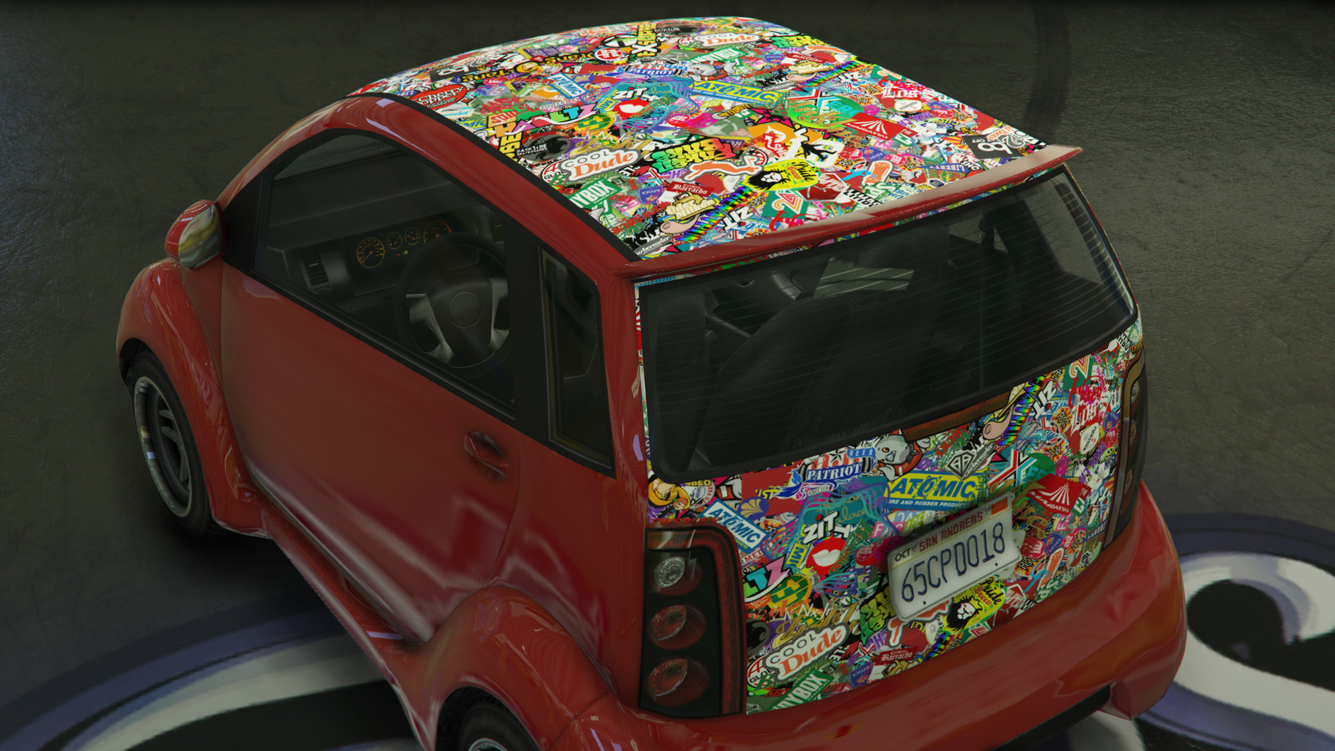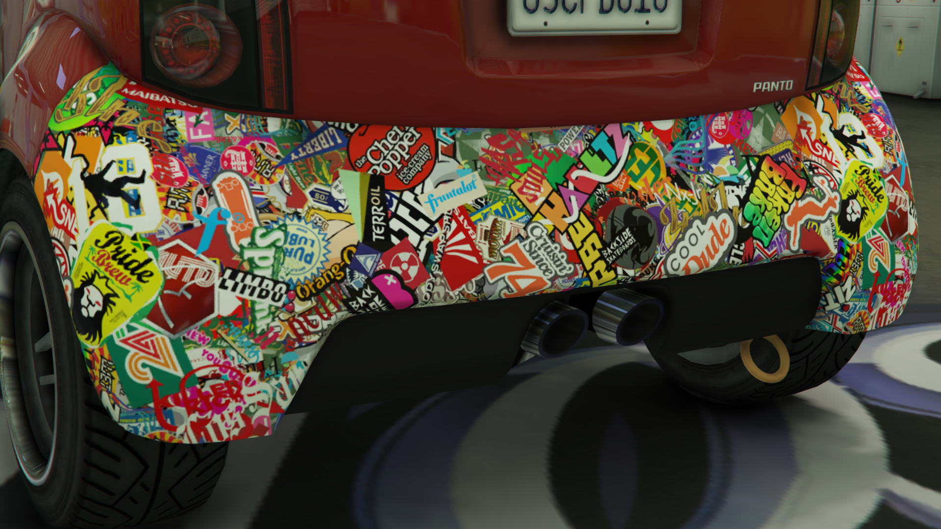 - When the Stickerbomb livery is added to the tailgate, the license plate will be shifted at a slight angle.