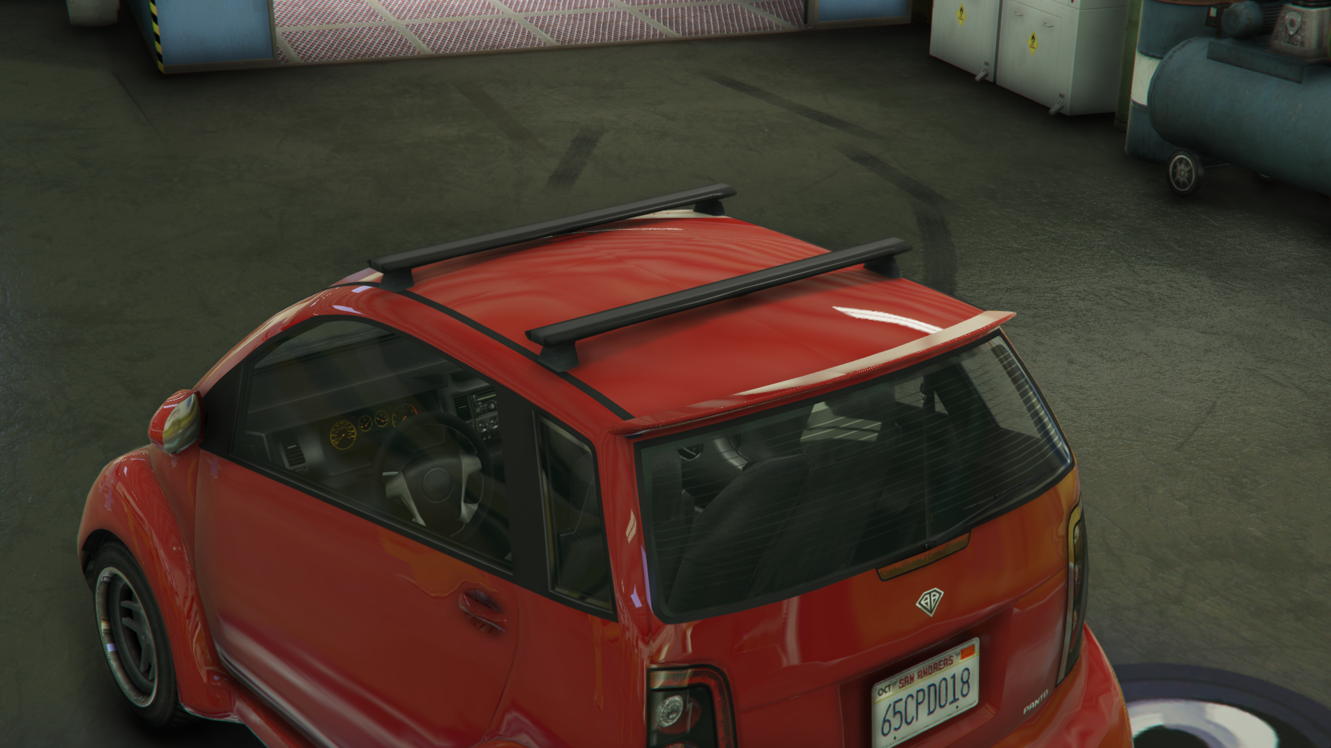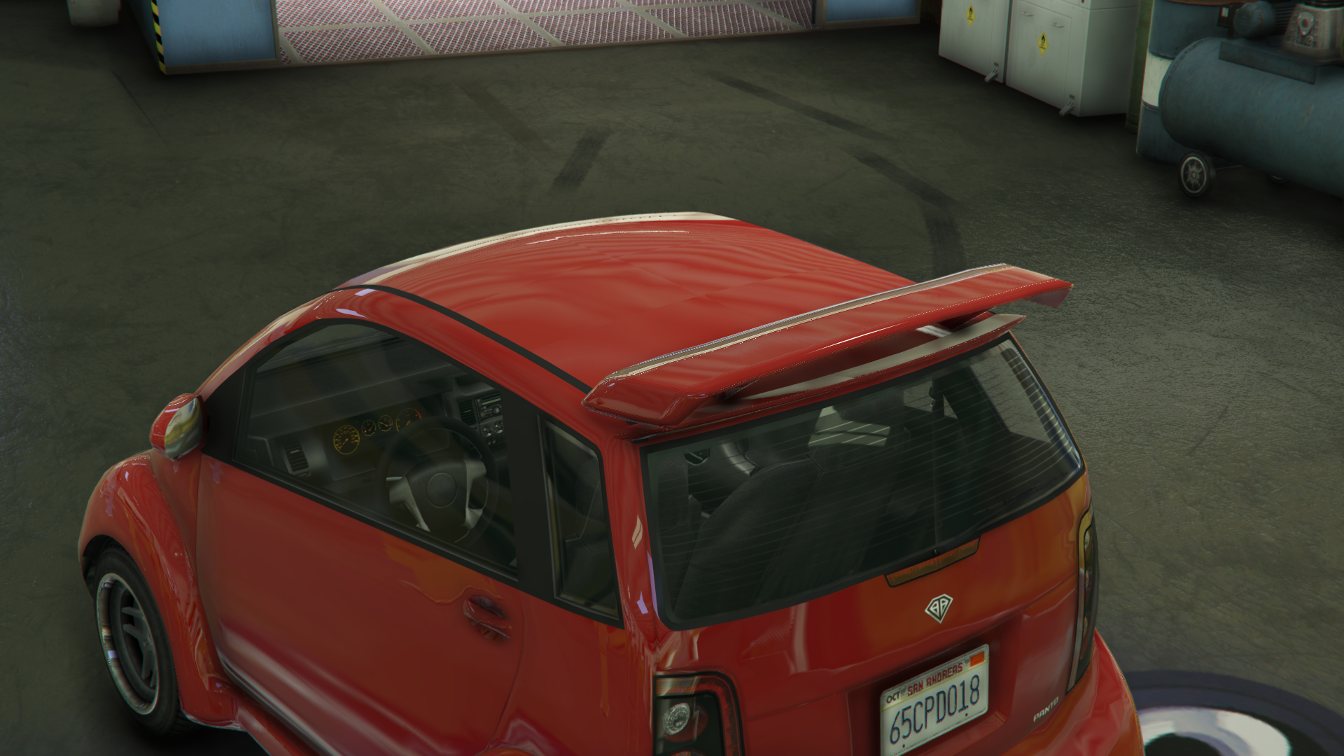 - There is currently a glitch that allows the player to turn the roof and/or trunk invisible based on the chosen modification. This can be done by buying a roof modification in Los Santos Customs, then scrolling through the roofs quickly until it lands on the stock option without visible roof and/or trunk. Depending on how much of the car is covered by the chosen modification, only the roof can be invisible but some modifications also make the trunk together with the roof invisible. If the trunk is invisible, the badge will also appear floating in the air. While using this glitch, the player can still apply a spoiler which will appear floating in the air. The glitch works similar to how some cars can have their stock spoilers removed.