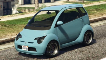 The Panto reappears in Grand Theft Auto V and Grand Theft Auto Online retaining its microcar design, surpassing the Weeny Issi's already small size. It is manufactured by Benefactor and resembles a 2007-2014 Smart Fortwo. The overall design is inspired by Gordon Murray T.25 and Gordon Murray T27. The Volkswagen Up! is the base for the rear fascia, the Mitsubishi i for the frontal fascia, and the Toyota iQ/Scion iQ/Aston Martin Cygnet for the side profile.