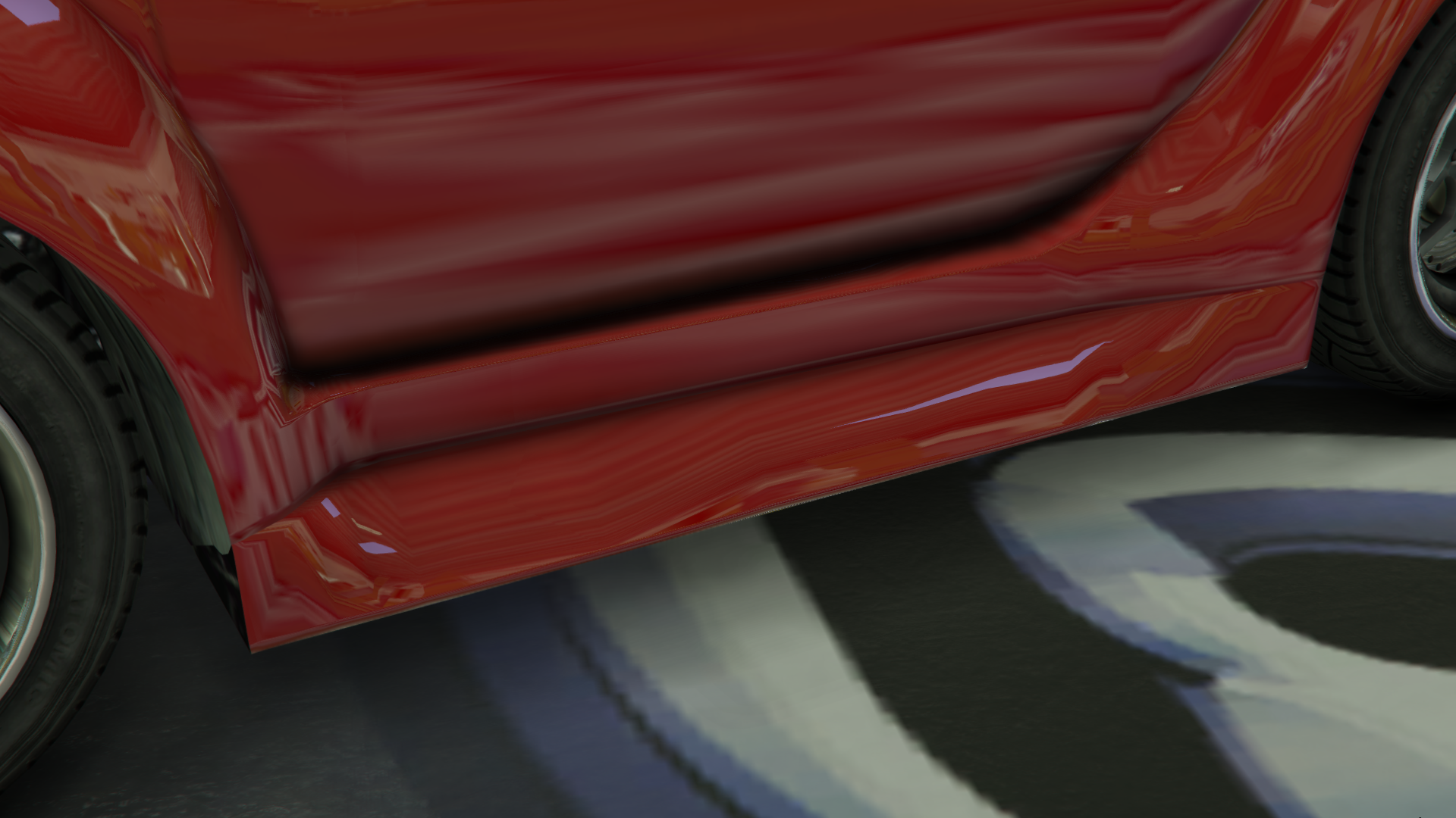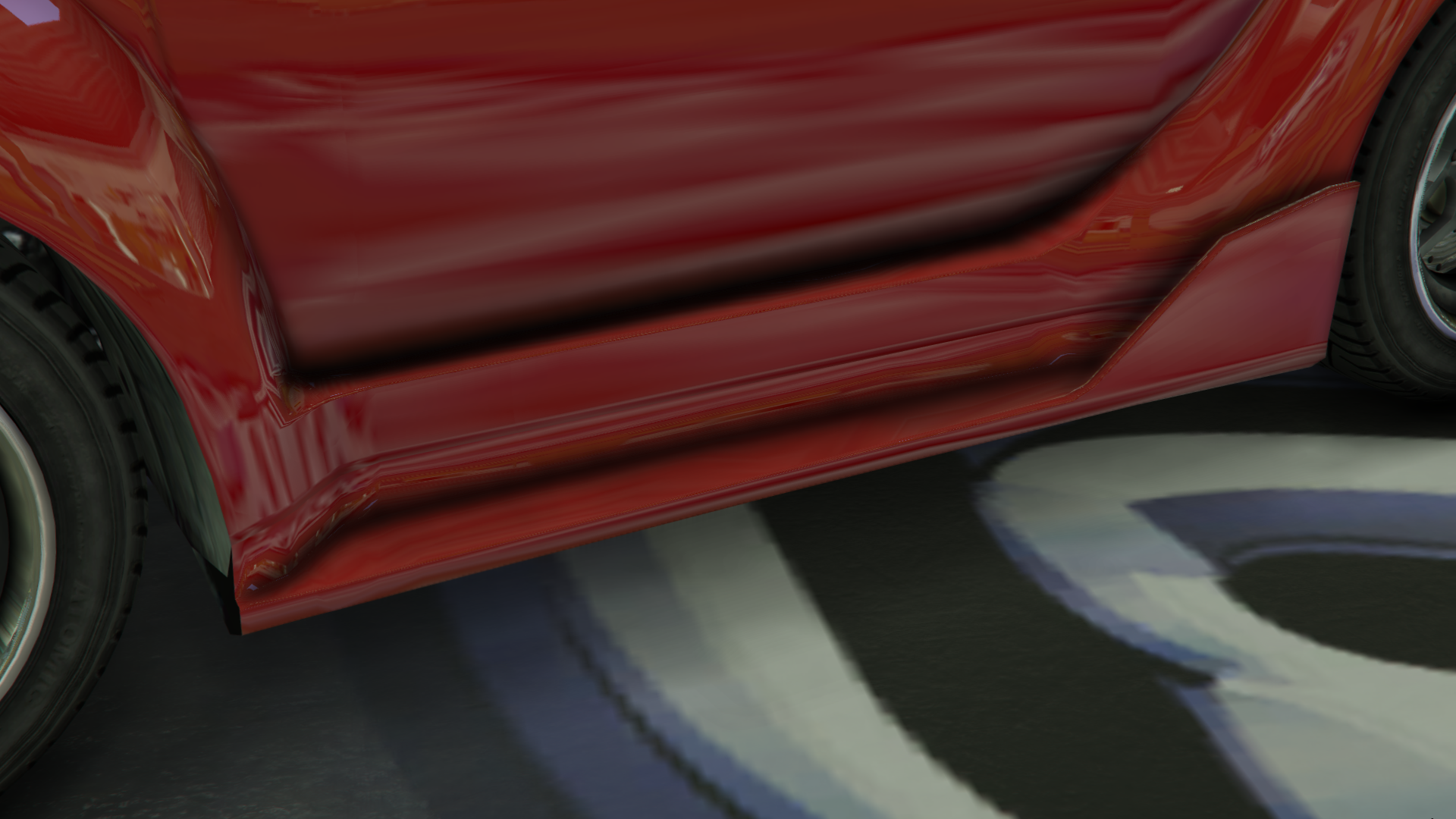 The primary colour of the car is applied on the main body, while the secondary colour is applied on the bumpers, skirts, roof panel and mirror shells. It has "El Quatro" tuner wheels that are also available at Los Santos Customs.