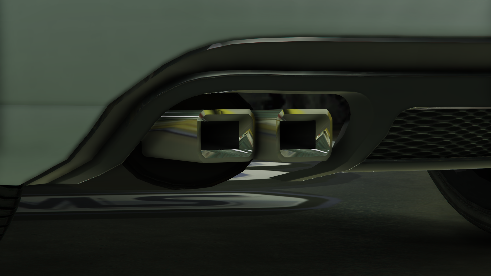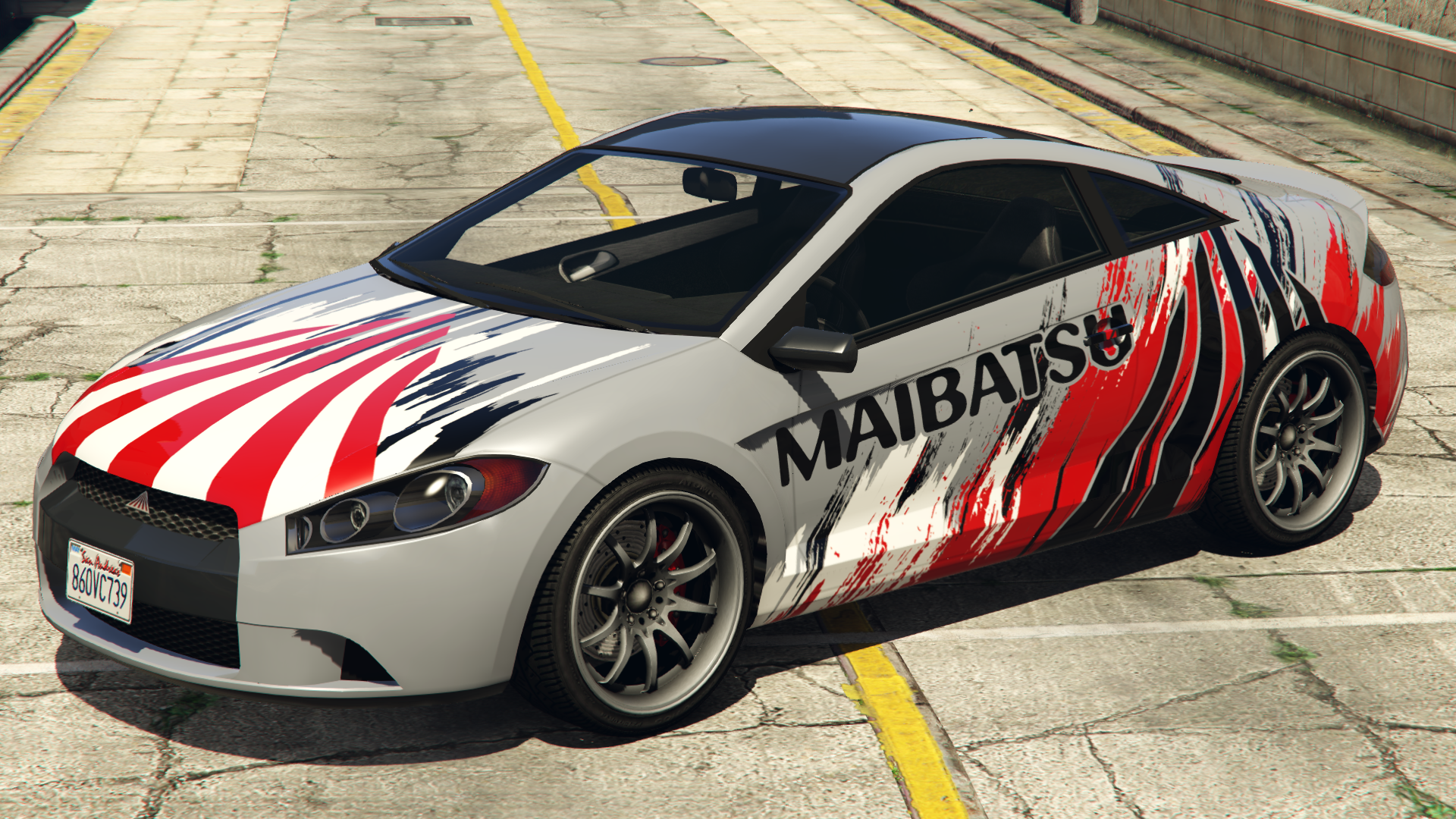 The car originally featured black "Maibatsu" lettering on the lower part of the rear bumper, but it was removed in the After Hours update, presumably to avoid conflicting with the new livery modifications it received in the same update.