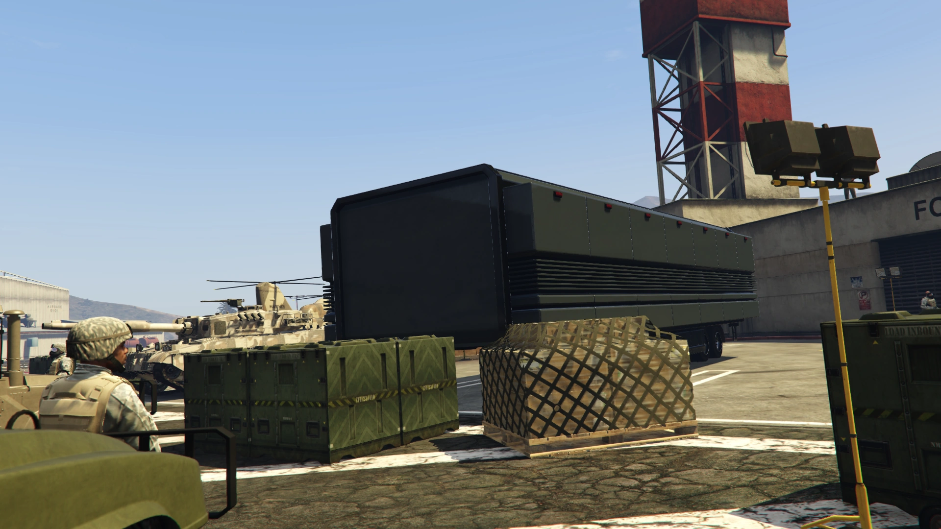 Once inside, the player will need to search for the trailer, which will be located either inside hangar A1 or in front of Fort Zancudo Fire Station. Once located, the player will need to take a photo of the trailer and send it to Sessanta, while staying clear of the soldiers inside, else they will open fire on the player. After that, Sessanta will tell the player to plant the device underneath the trailer, more often than not requiring the player to fight the soldiers.