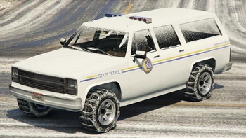 The vehicle is only available in a white color with NYSP markings around, consisting of gold and blue stripes down the side, "STATE PATROL" on the front fenders and the emblem emblazoned on the front doors, as well as "Trooper of the year 1951" markings on the rearmost sections of the sides. It uses the same wheel design as the snowy variant of the Rancher XL, being a derivative of the "Raider" off-road rims seen in Los Santos Customs, fitted with tire chains to improve control while driving on snowy surfaces (however, this is purely cosmetic).