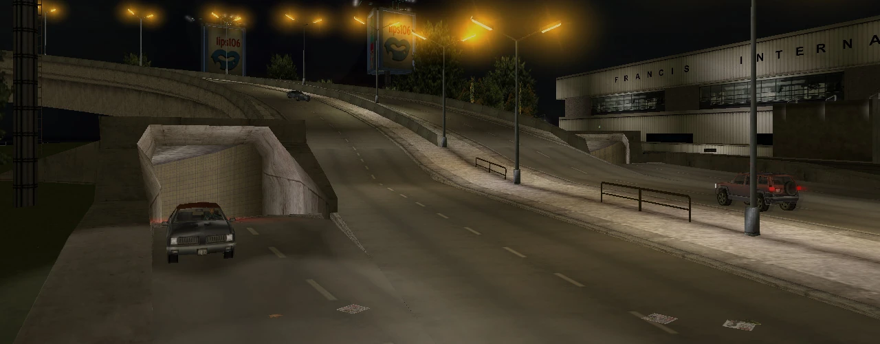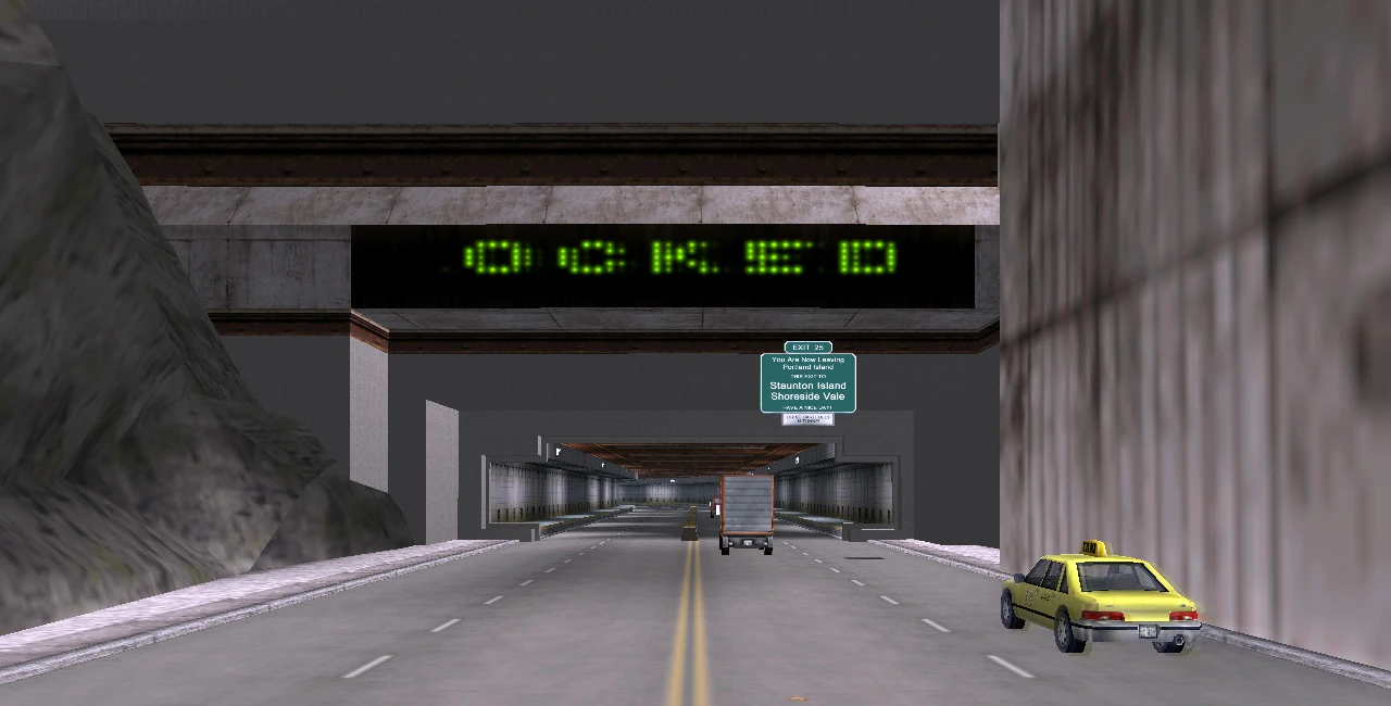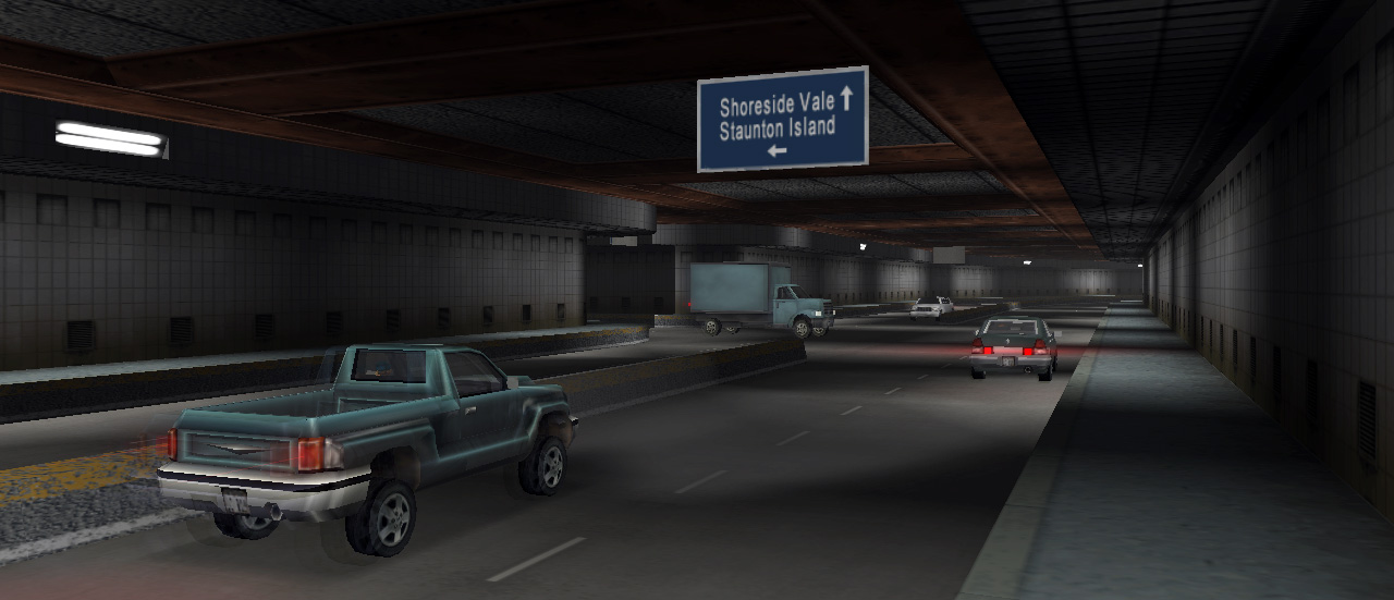 If the player manages to reach Staunton before it is unlocked after "Last Requests", the tunnel is revealed to only be sealed from the Portland end, allowing the player to access Shoreside Vale via the tunnel (as the Shoreside Lift Bridge remains non-operational). After "Last Requests", the route to the Shoreside Vale exits is sealed off from traffic until "A Drop in the Ocean". If the player ventures towards into the Shoreside stretch, traffic between the two Shoreside Vale portals is revealed to be free flowing, lending to the idea in GTA Liberty City Stories that these ends of the tunnel have been opened to the public longer than the Staunton and Portland ends.