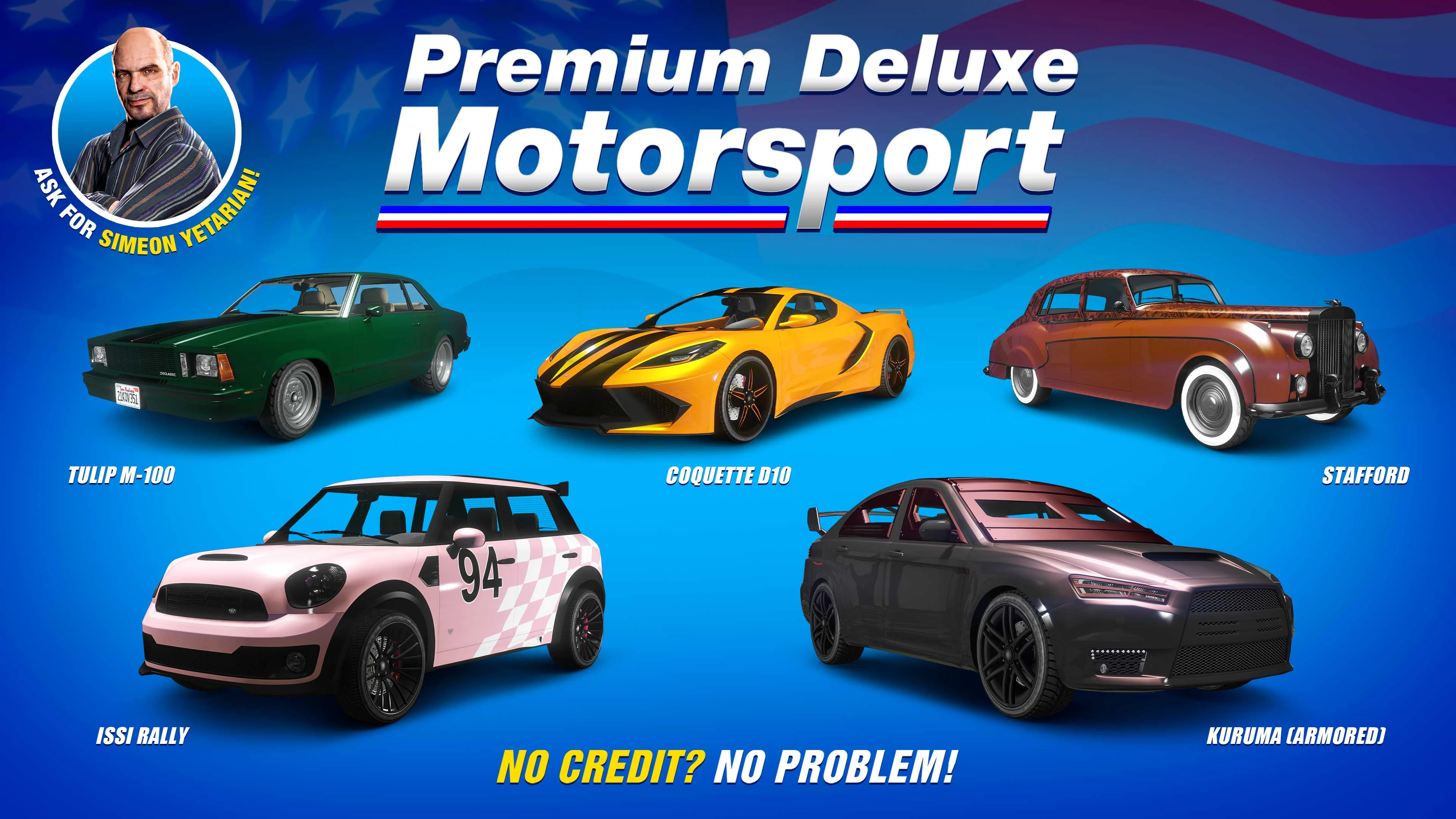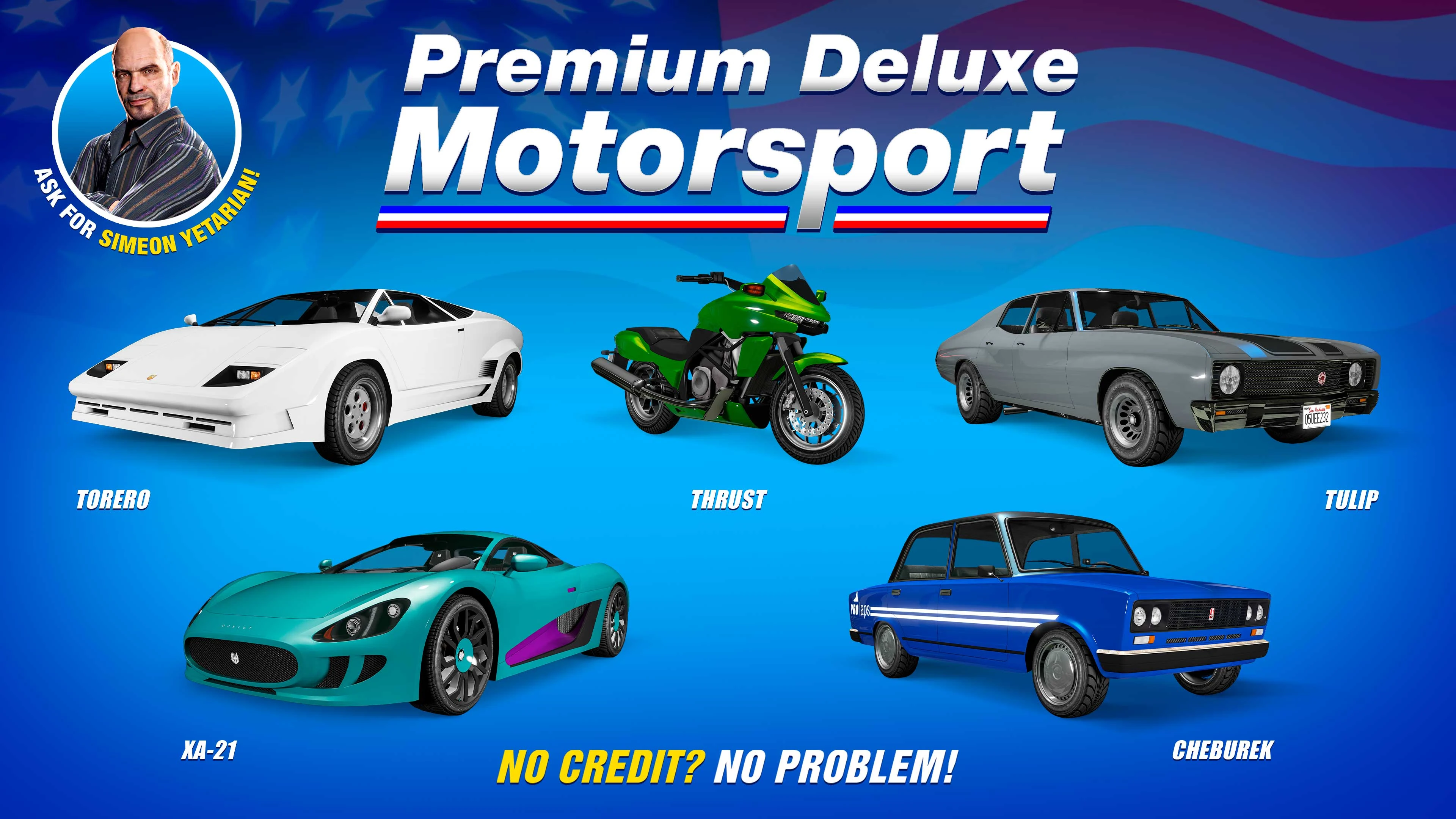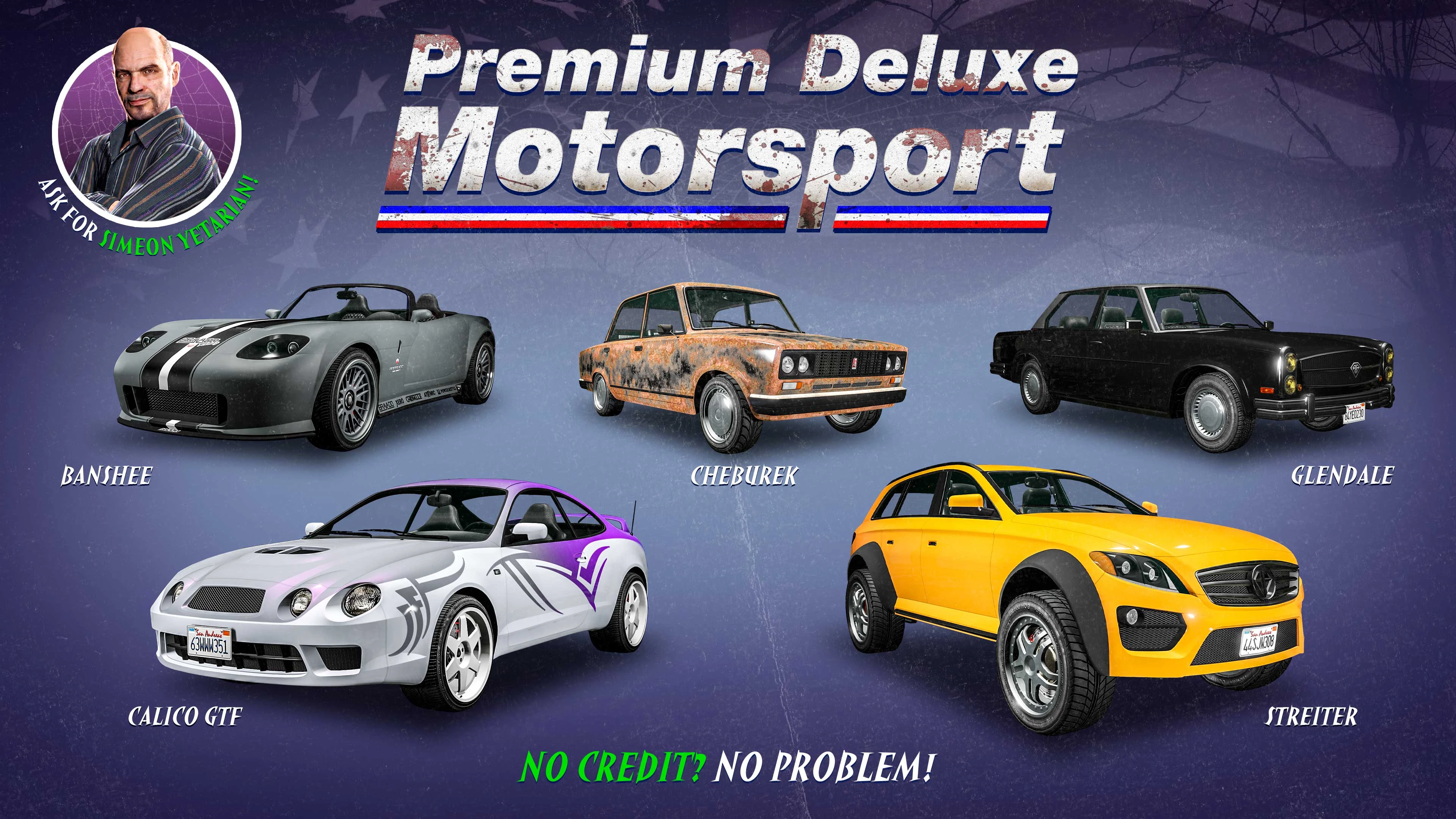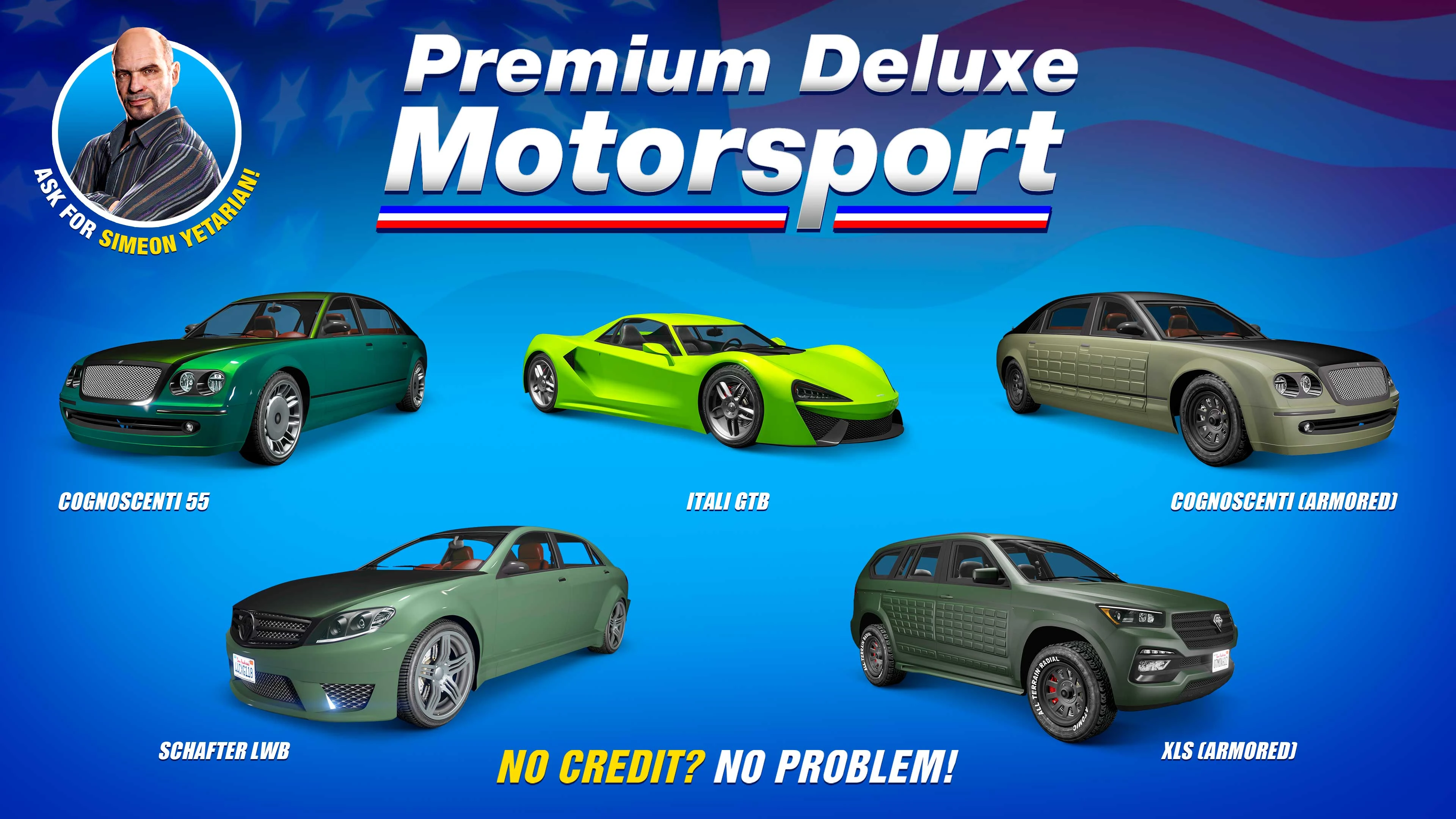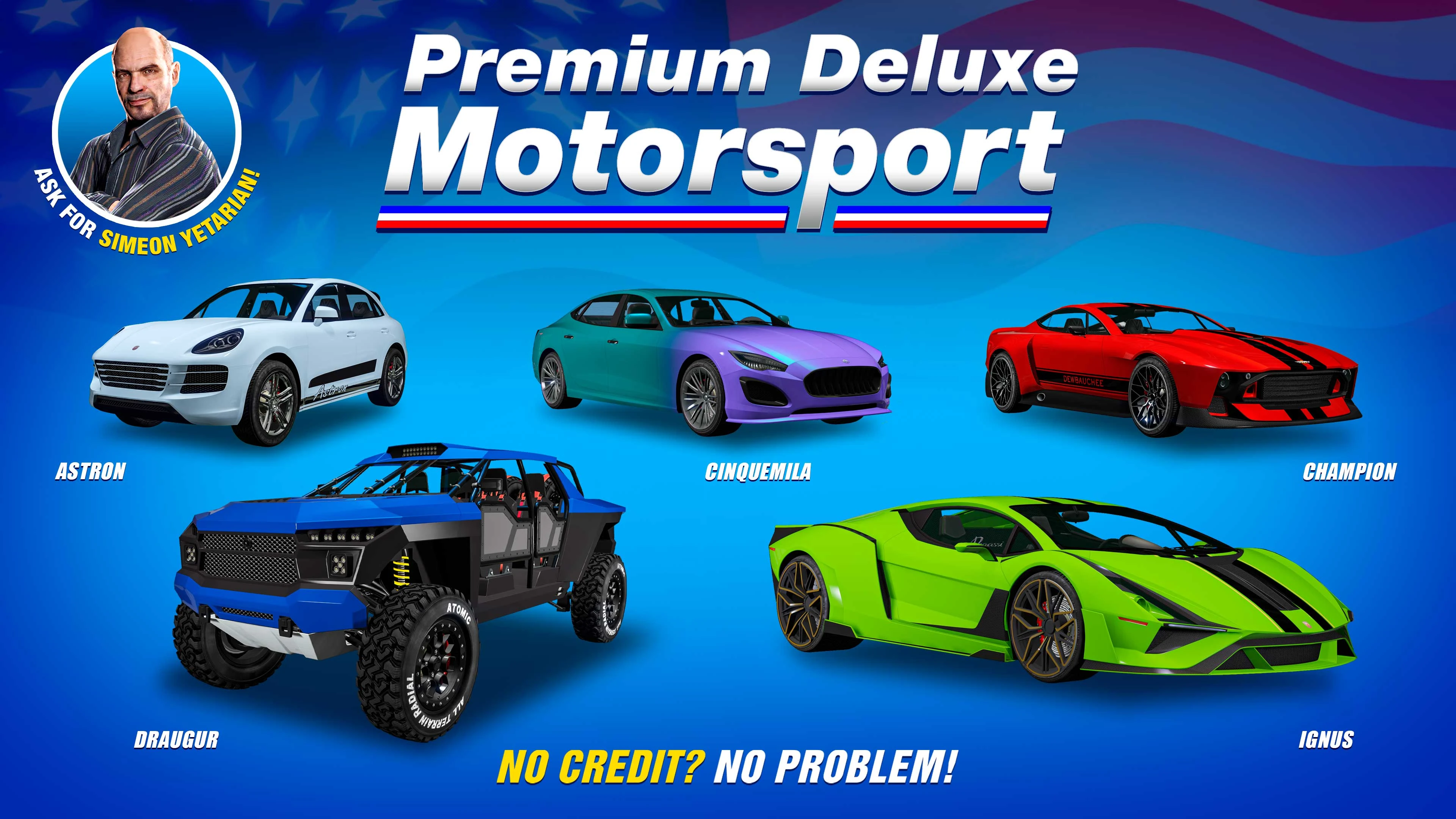 Premium Deluxe Motorsport is a vehicle dealership in Grand Theft Auto V and Grand Theft Auto Online . It is owned by Simeon Yetarian.