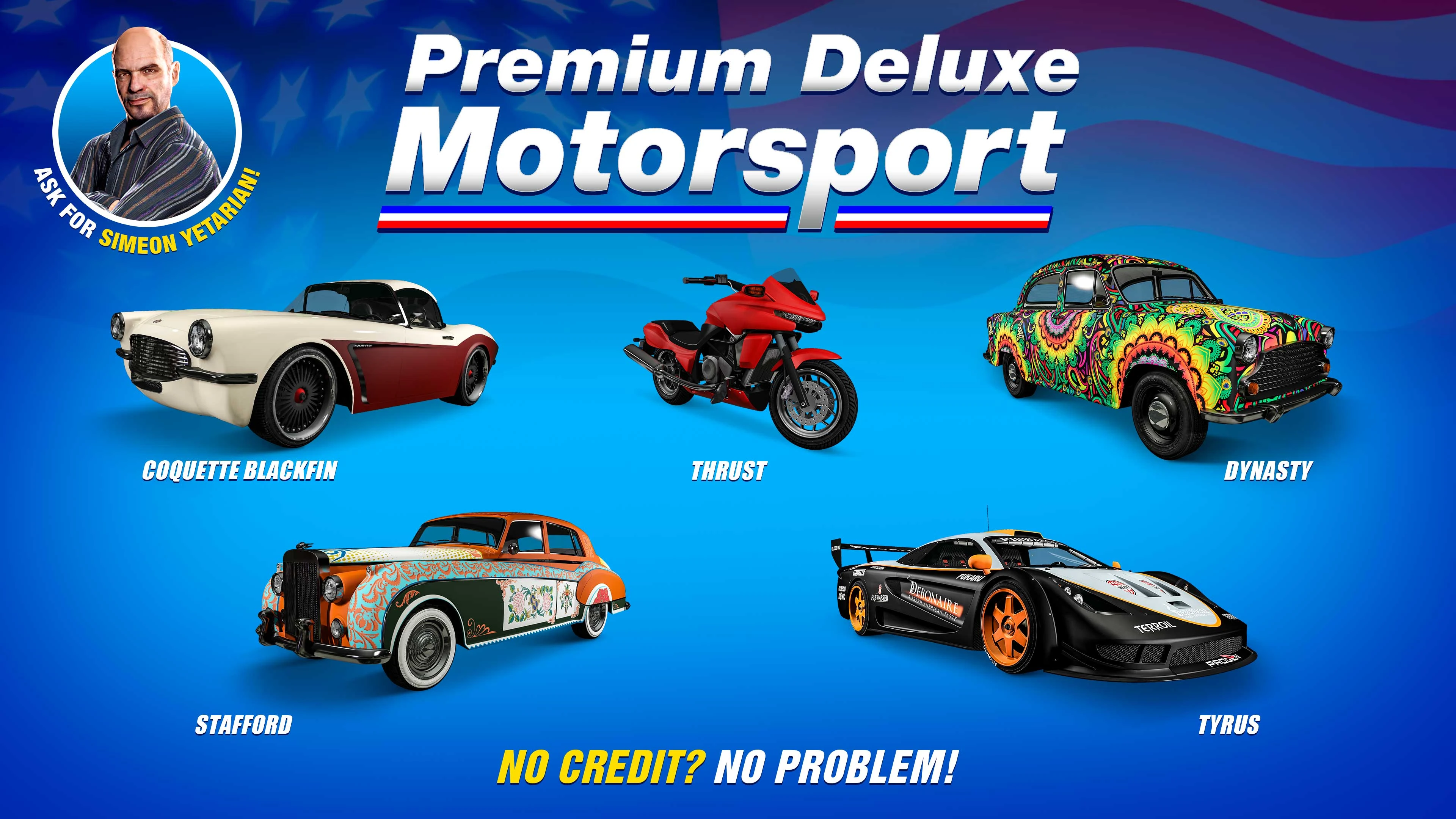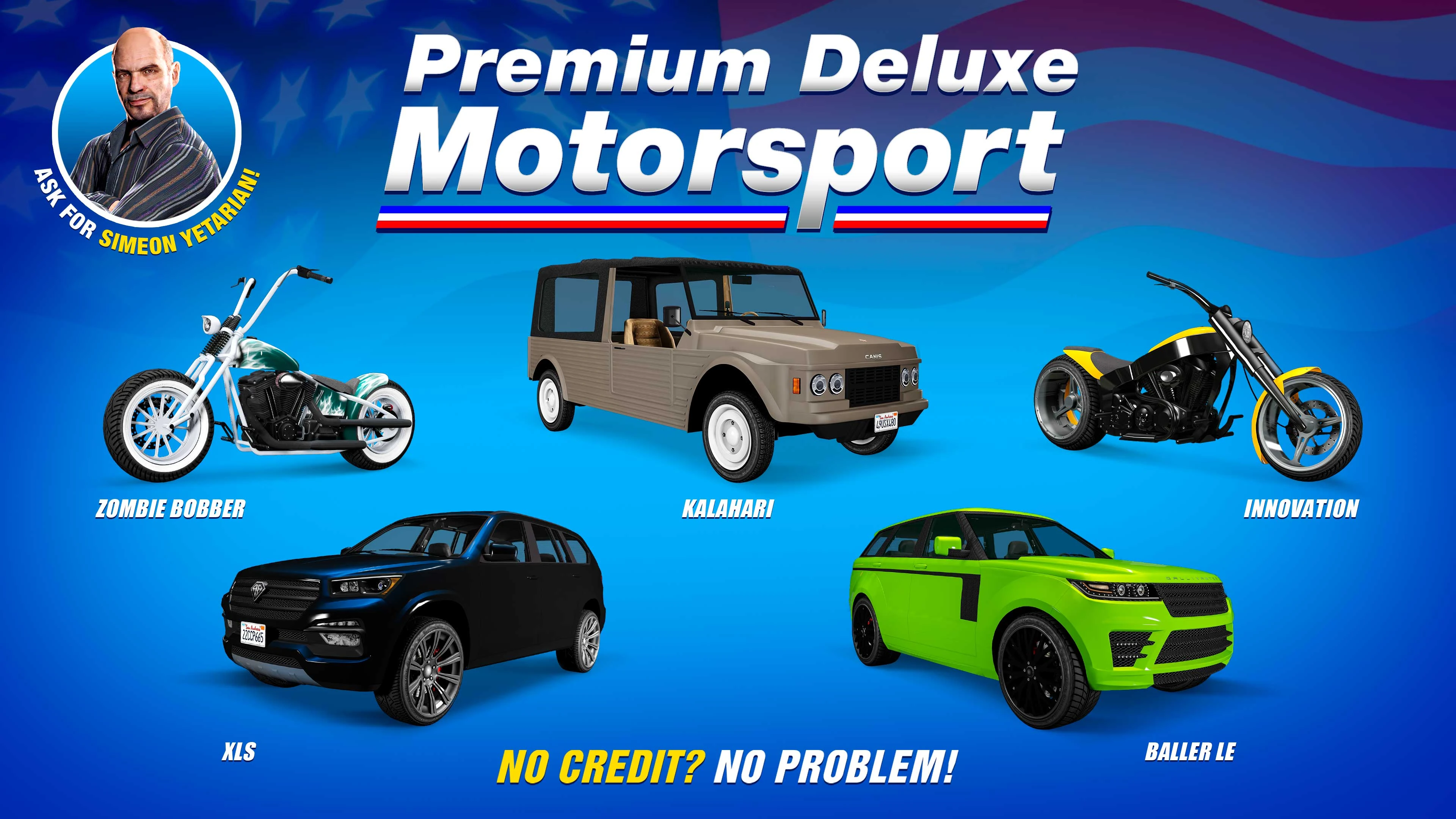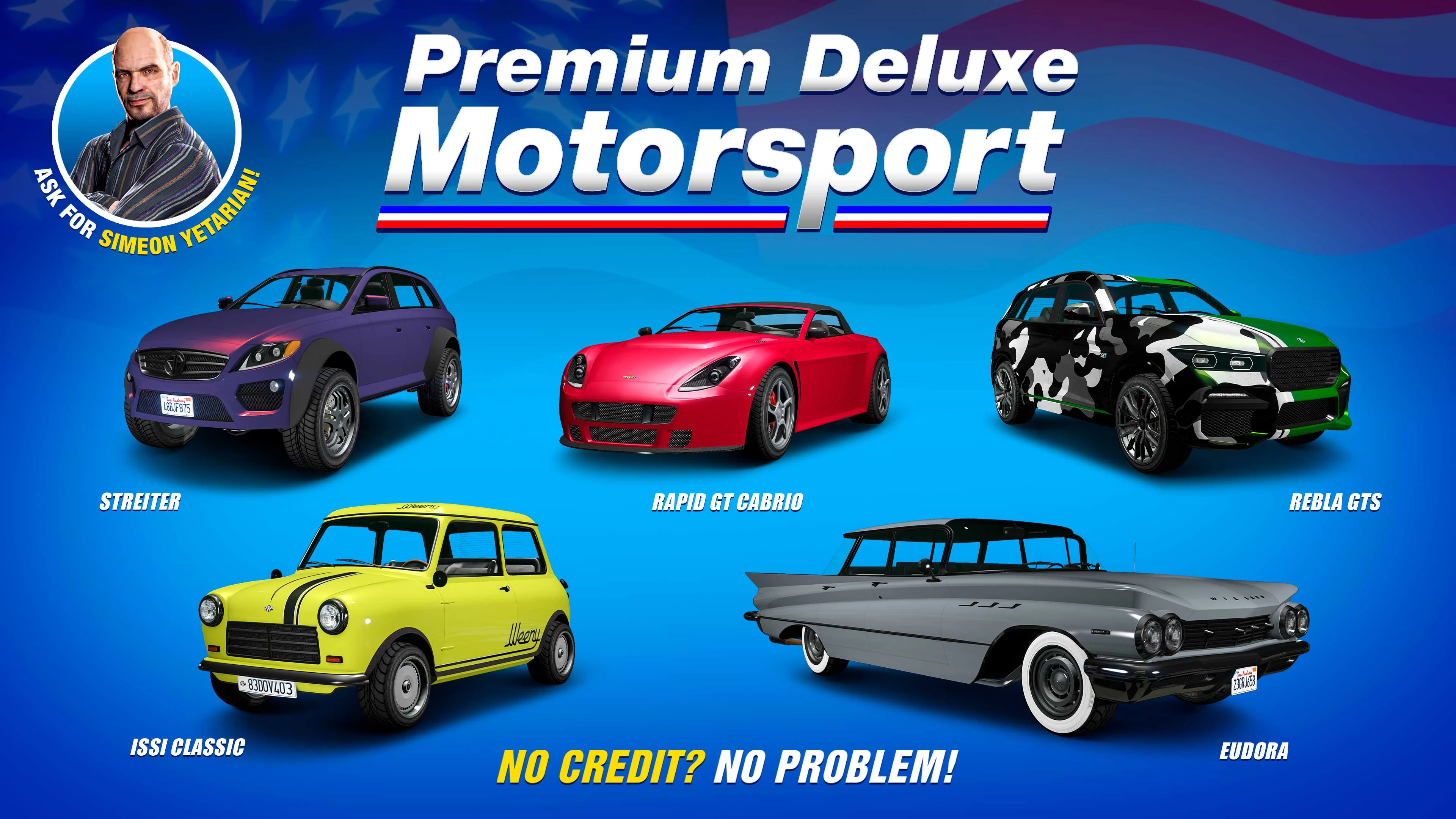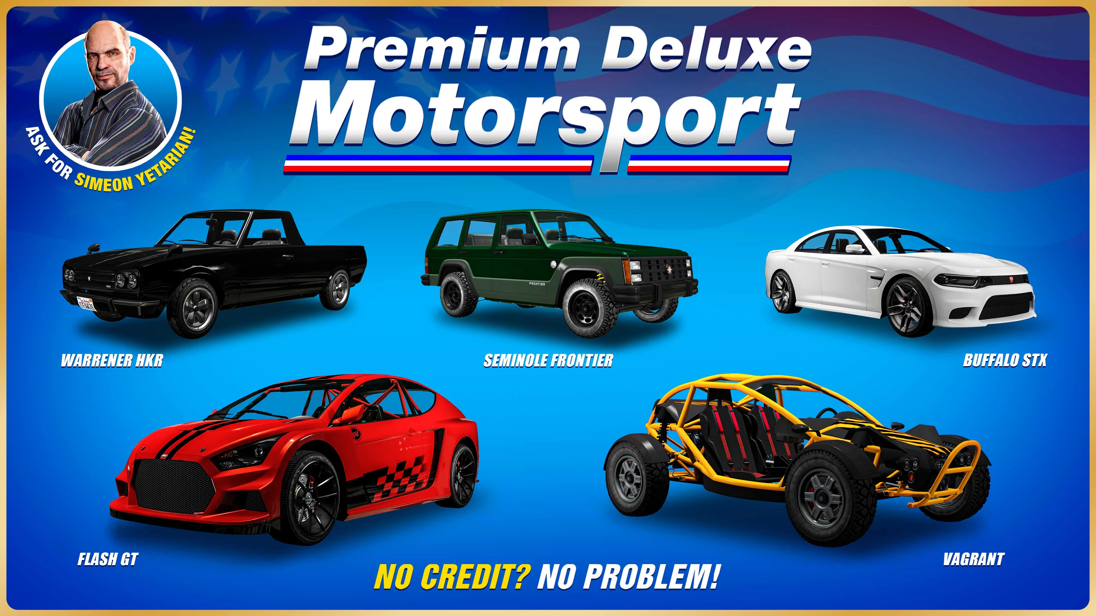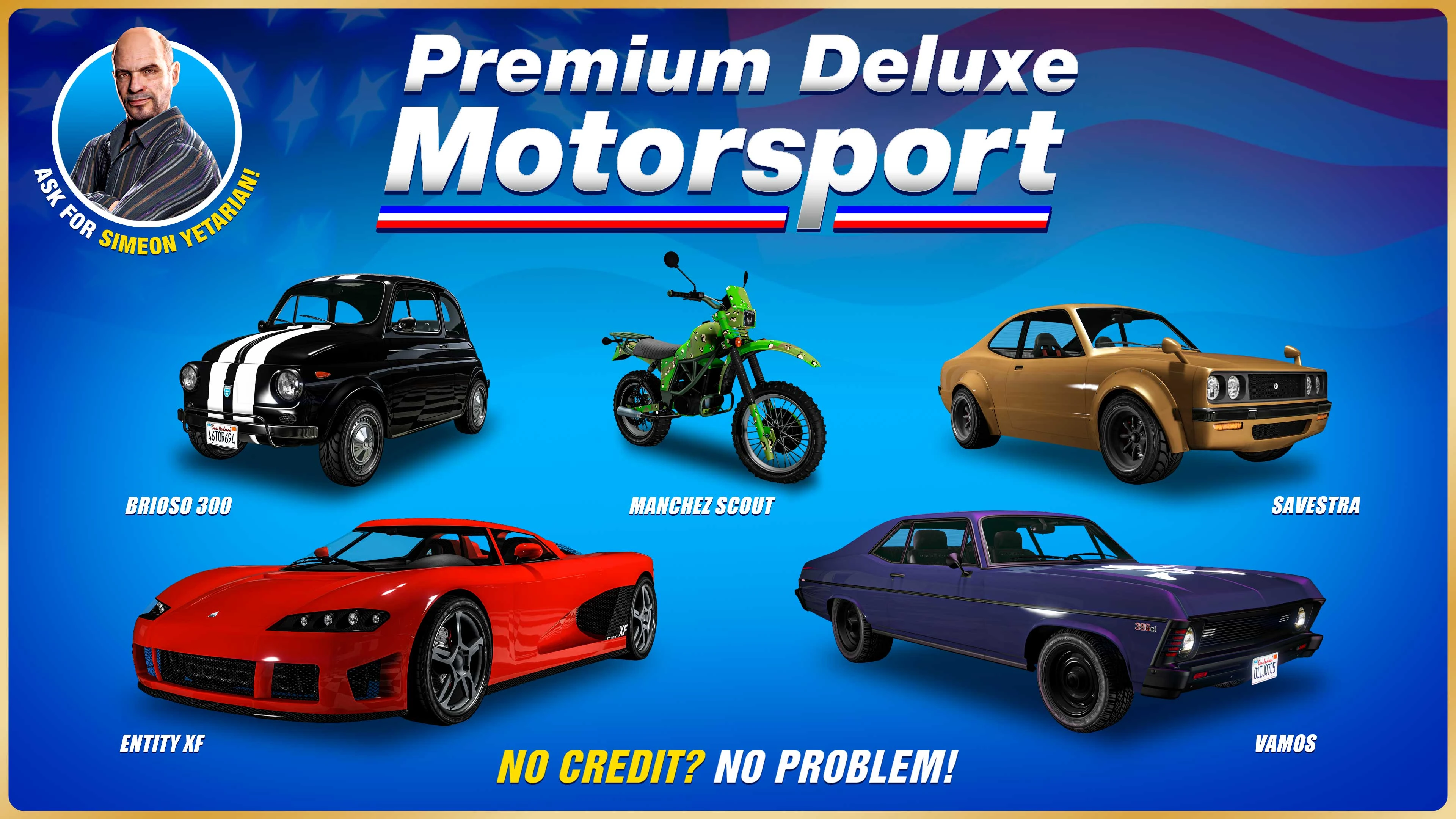 Premium Deluxe Motorsport is a vehicle dealership in Grand Theft Auto V and Grand Theft Auto Online . It is owned by Simeon Yetarian.