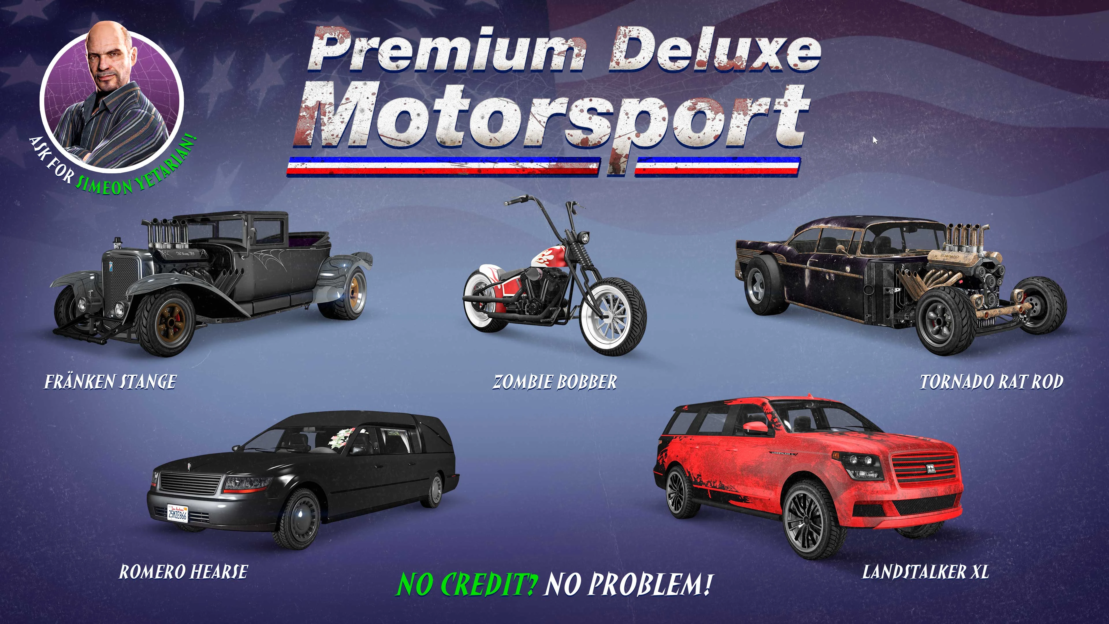 Upon arrival in Los Santos, the GTA Online Protagonist is introduced to Simeon by way of a phone call. After recieving a complimentary Los Santos Customs upgrade to their first owned vehicle, Simeon will call in the favor and get the player to do work for him, including regularly dealing with comptetitors to the dealership.