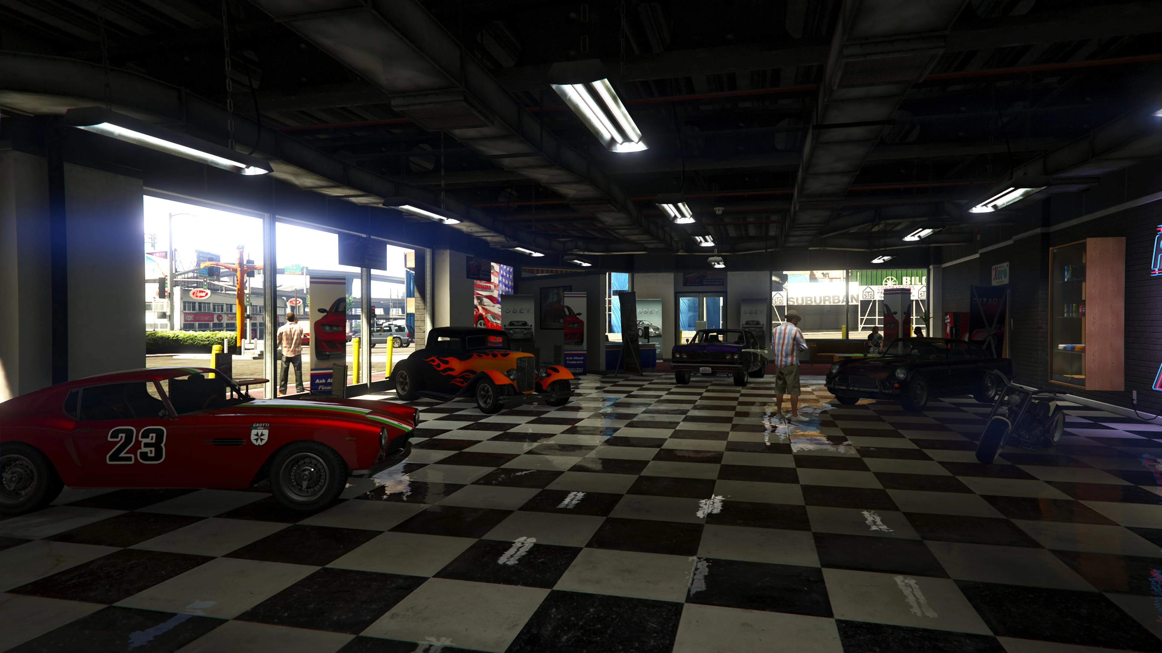 The trigger point for Premium Deluxe Repo Work missions was relocated from outside the main window to inside Simeon's office within the dealership and the Business Battle event no longer takes place at all.