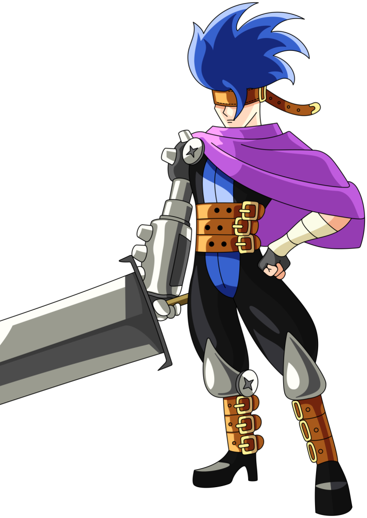 The Sword Boy character design could be a jab at the Final Fantasy series for its over the top use of belt-themed clothing and over-sized swords. His design also seems to be based on Cloud Strife from Final Fantasy VII, most notably the use of a giant broadsword and wearing a similar arm bracelet and shoulder piece.