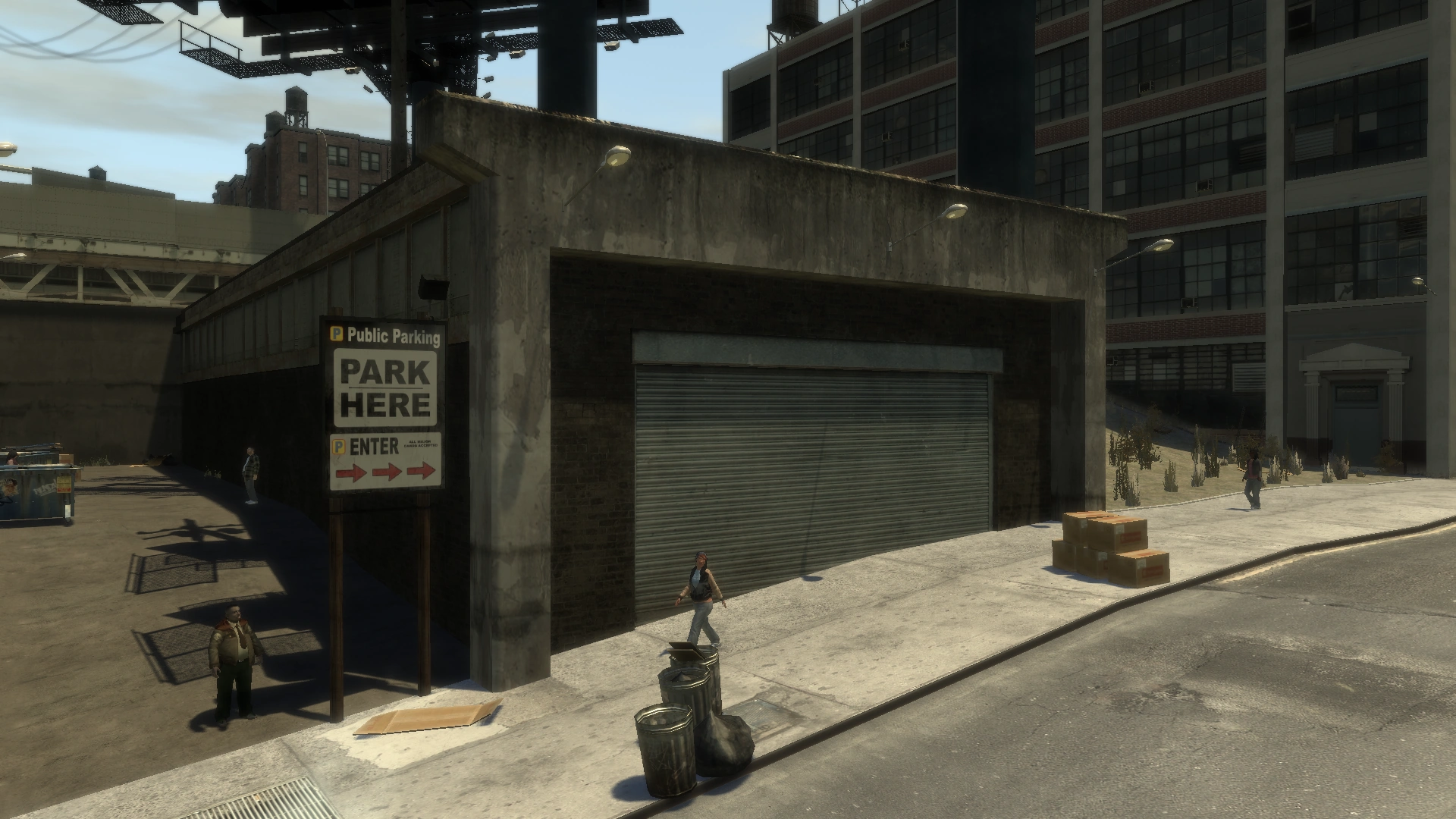 The car park is located on Pyrite Street in Middle Park West, Algonquin, Liberty City. It is where Bryce Dawkins leaves his Infernus which Bernie Crane gives to Niko Bellic as a gift in Grand Theft Auto IV. |