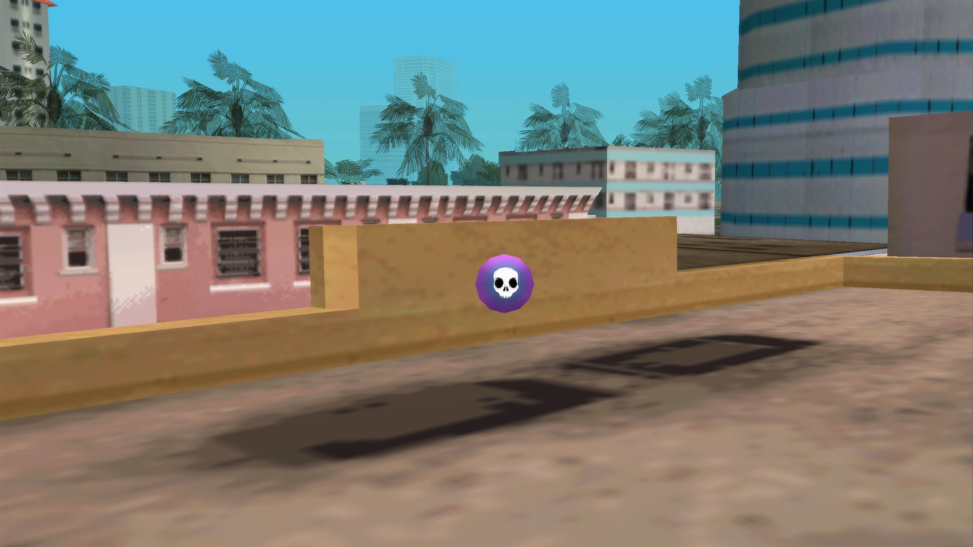 There are a total of 30 Rampages (35 Rampages in the PlayStation 2 version) located all around Vice City, appearing as a rotating white skull pickup item, which the player must find and collect while on foot and not in an active mission to trigger the challenge.