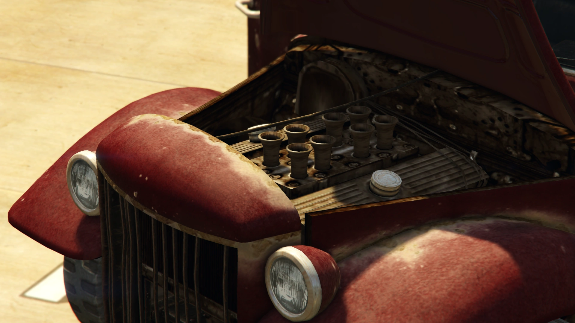 Most of the above damage can be repaired at Los Santos Customs, or, if desired, complete removal of the body panels. However, no matter what, the faded and rusted paint job remains. The body modifications available for this vehicle can make it look more like a Rat rod.