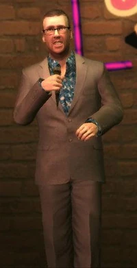 Frankie Boyle is a Scottish stand-up comedian and writer who appears in The Lost and Damned as one of the comedians at the Split Sides comedy club. During his performances, Frankie will either speak about sex, children, black comedy, scientists, or animals.