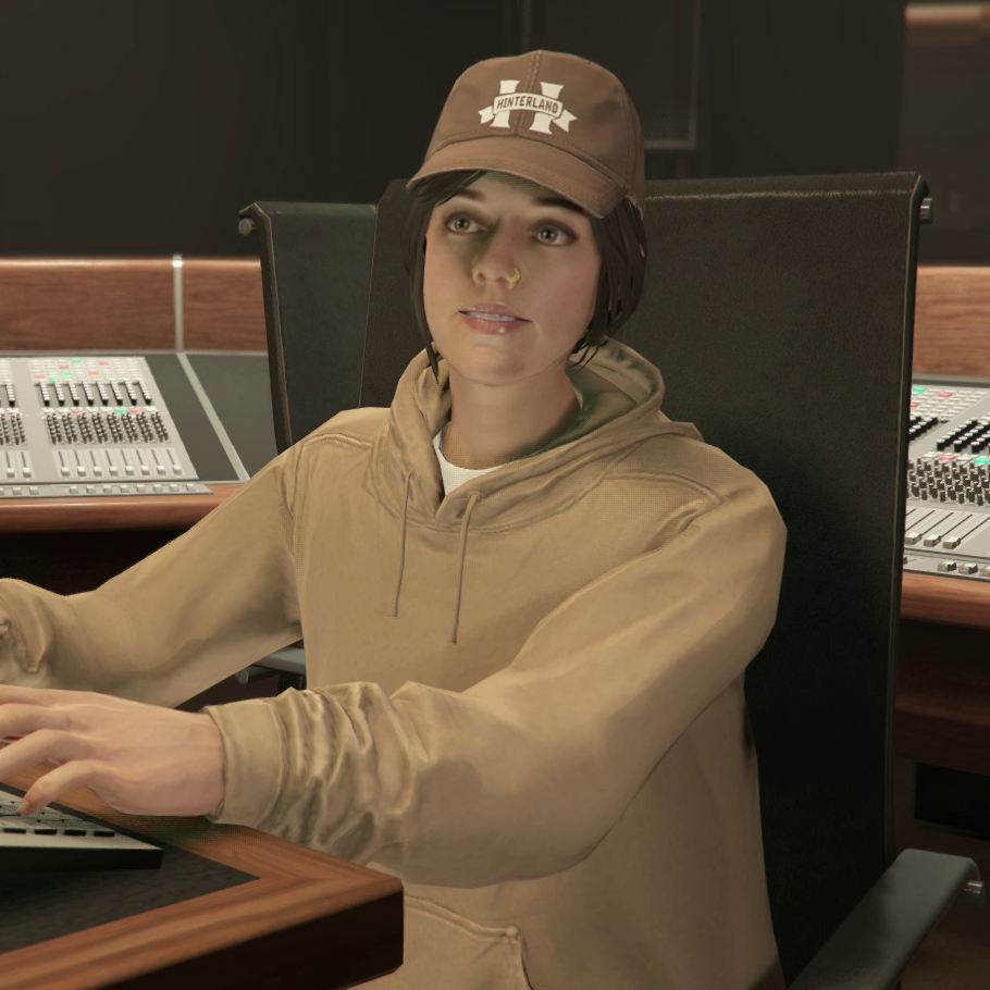 Lola Romero is an American recording and mix engineer and Grammy award winning Chief Engineer who appears in Grand Theft Auto Online as part of The Contract update. She first appears during Studio Time, alongside Dr. Dre and Anderson .Paak. After the player has completed The Contract: Dr. Dre, they can enter the studio and see her at work. Usually she will just be seated at her workstation at the mixing desk.