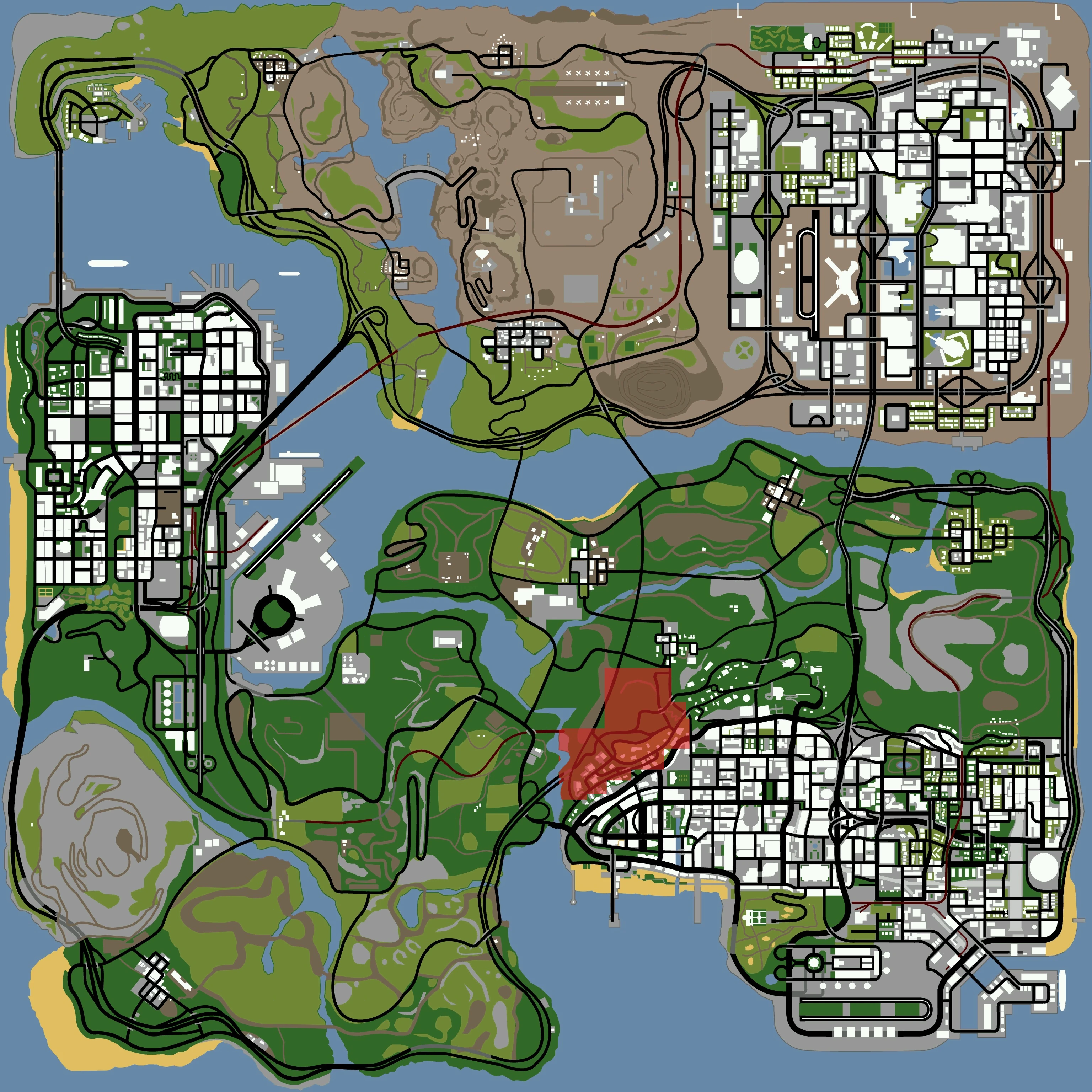 Richman is an affluent residential district in Grand Theft Auto: San Andreas. Richman is located in northwestern Los Santos, west of Mulholland and north of Rodeo. It also borders two countryside counties, namely Red County (north) and Flint County (west).