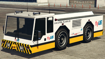 The vehicle can spawn in a white primary color applied on the body, and a light grey or yellow secondary color applied on the portions below the black side stripes and the towbars. It retains the same oversized industrial wheels.