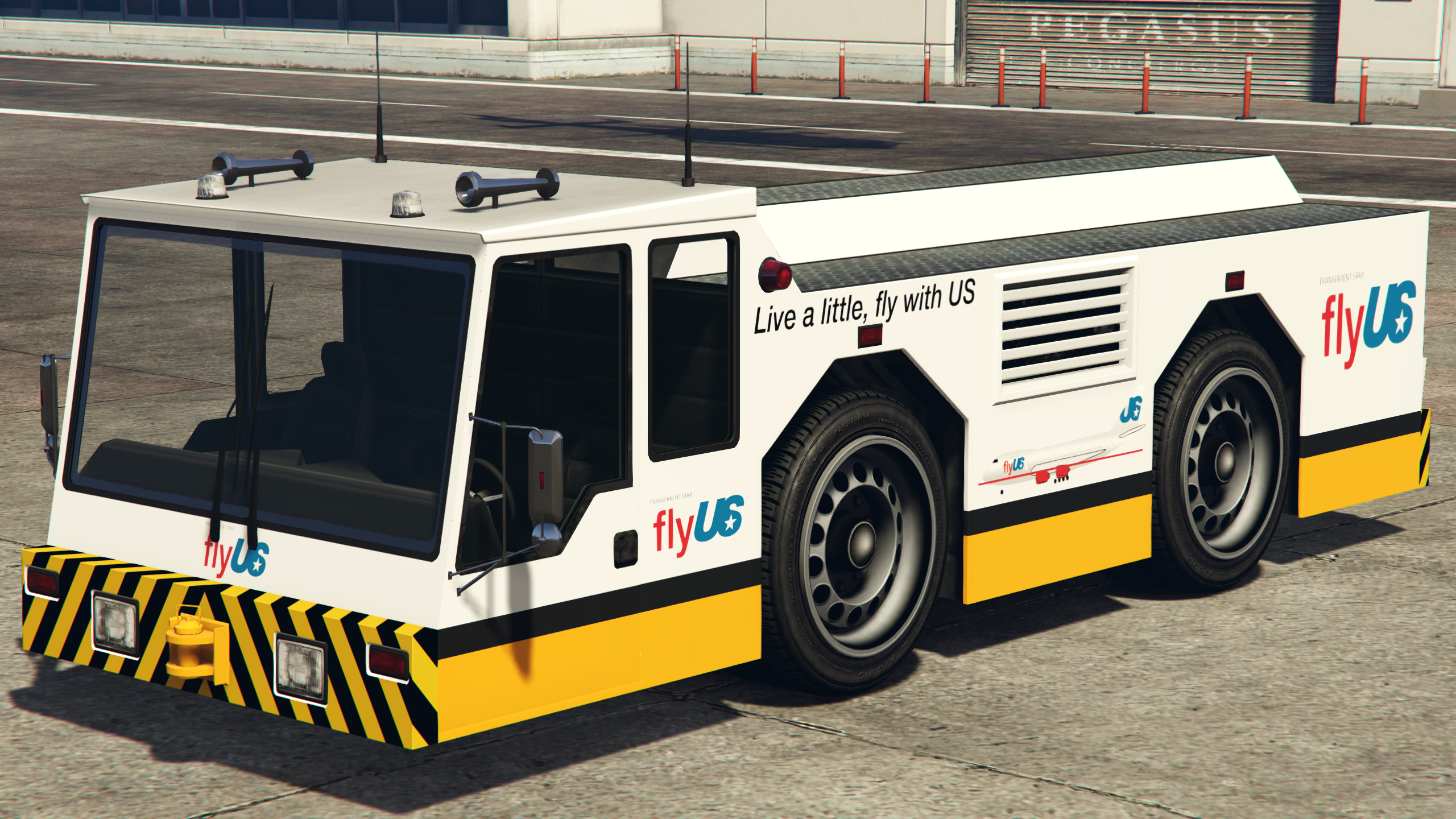 The truck bears a FlyUS livery, complete with a Jet image on either side and "Transparent Star" stencils close to every FlyUS logo and the slogan above the front wheels. It is only available in a greyish white color around the body, and uses oversized variations of the industrial wheels seen in trucks like the Mule and the Phantom, fitted with high-profile tires.