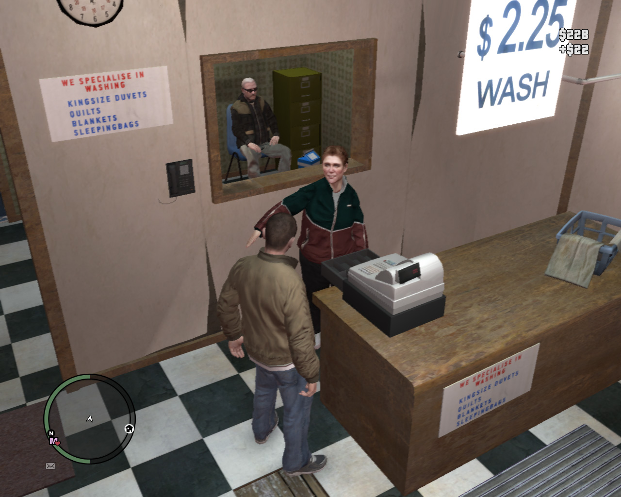 The player having just robbed $22 from a laundromat's cash register in GTA IV.