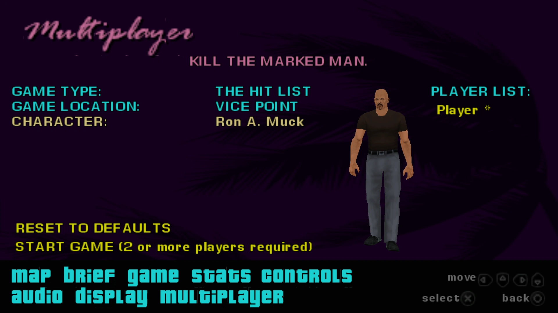 Ron A. Muck is a selectable playable character for certain multiplayer game modes, and plays no role in the storyline. This character is available in Vice City Survivor, Street Rage, Tanks for the Memories, The Hit List, Grand Theft Auto and Might of the Hunter.