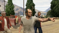 The three men get into Trevor's Bodhi to drive towards The Lost MC's location in Grapeseed. Once there, they confront and threaten Terry Thorpe and Clay Simons. This causes the two bikers to ride back to Stab City to warn the other Lost members, but Trevor kills them en route.