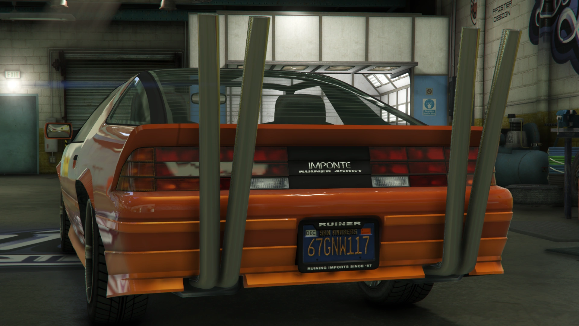 - Due to its similarities with the Nissan 300ZX Z31, the Ruiner in GTA V can be given massive "Shakotan" exhaust pipes, a large "Drag Wing" spoiler, a massive front splitter, and a visible oil cooler, all of which are modifications derived from the Japanese "Shakotan" car scene.