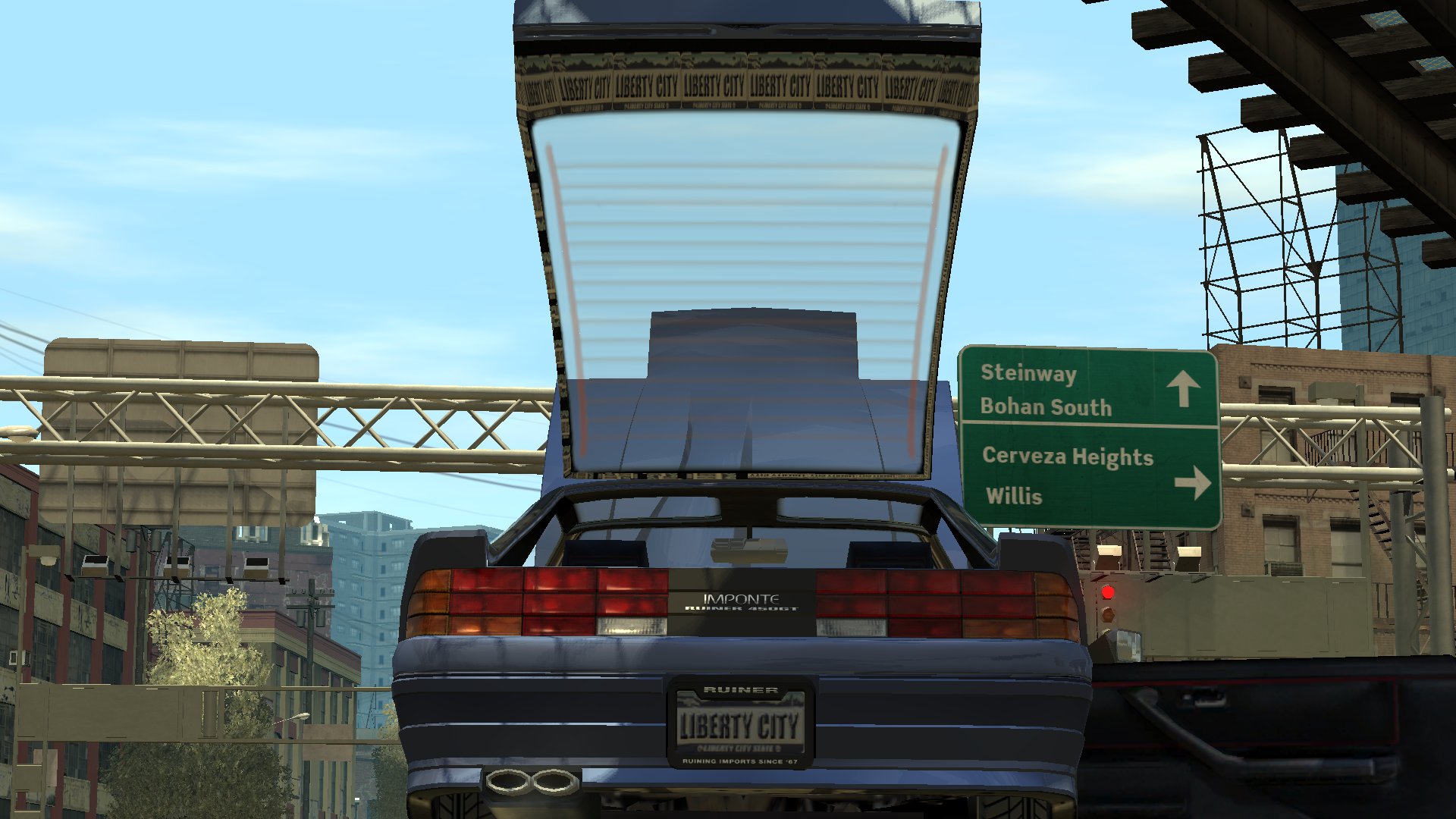 - If the player manages to open or remove the rear trunk of the vehicle, the inner side of the hatch will have textures of Liberty City license plates on it.[5]