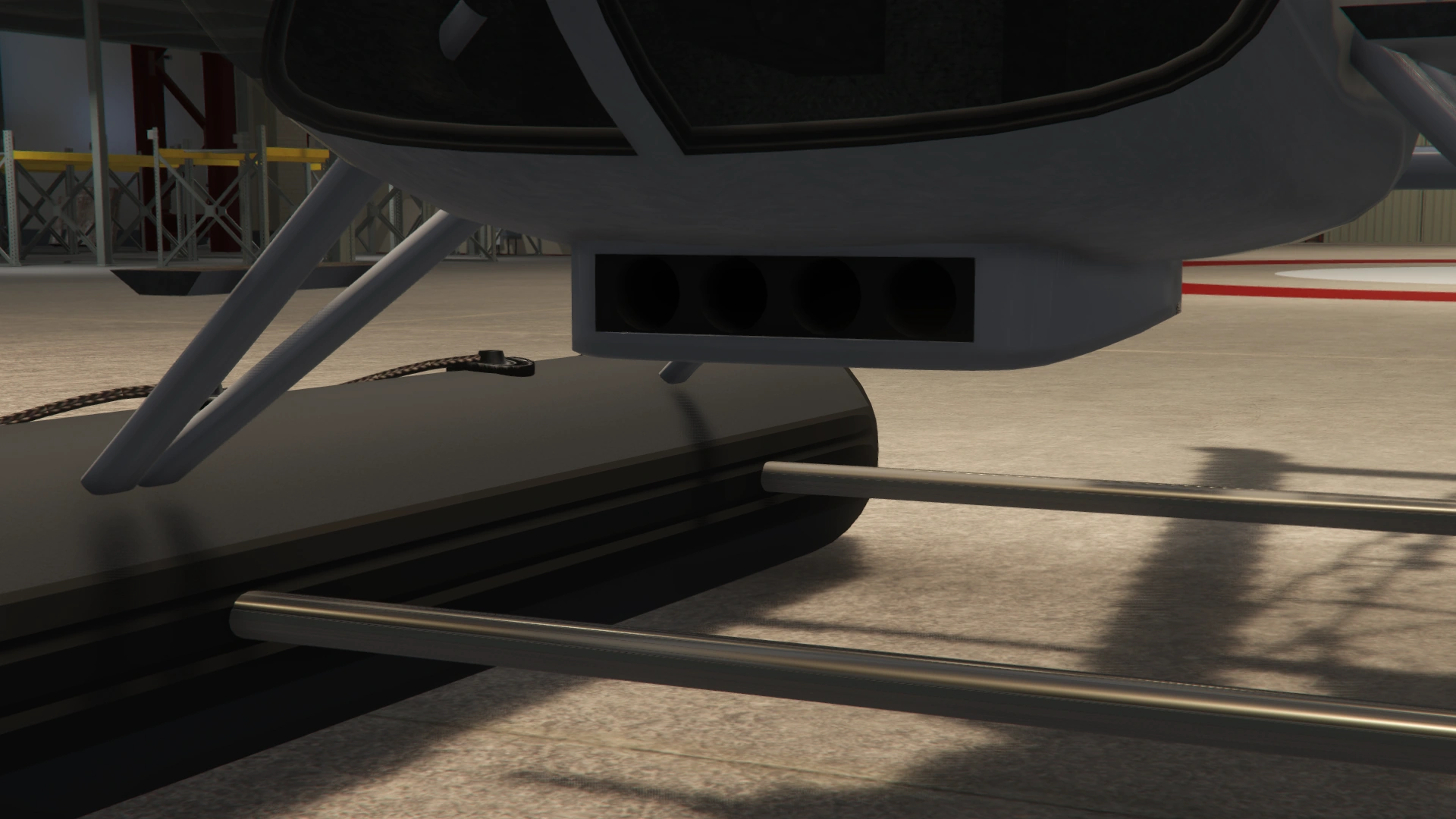 - At the Western Los Santos Police Department or Las Venturas Police Department occasionally. Entering without a police vehicle will lead to three-star impound. Must be pushed by the player using a car or otherwise before taking off or else the blades bump in the nearby pillar and will not move.