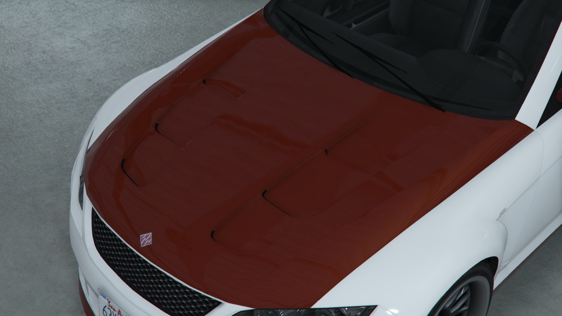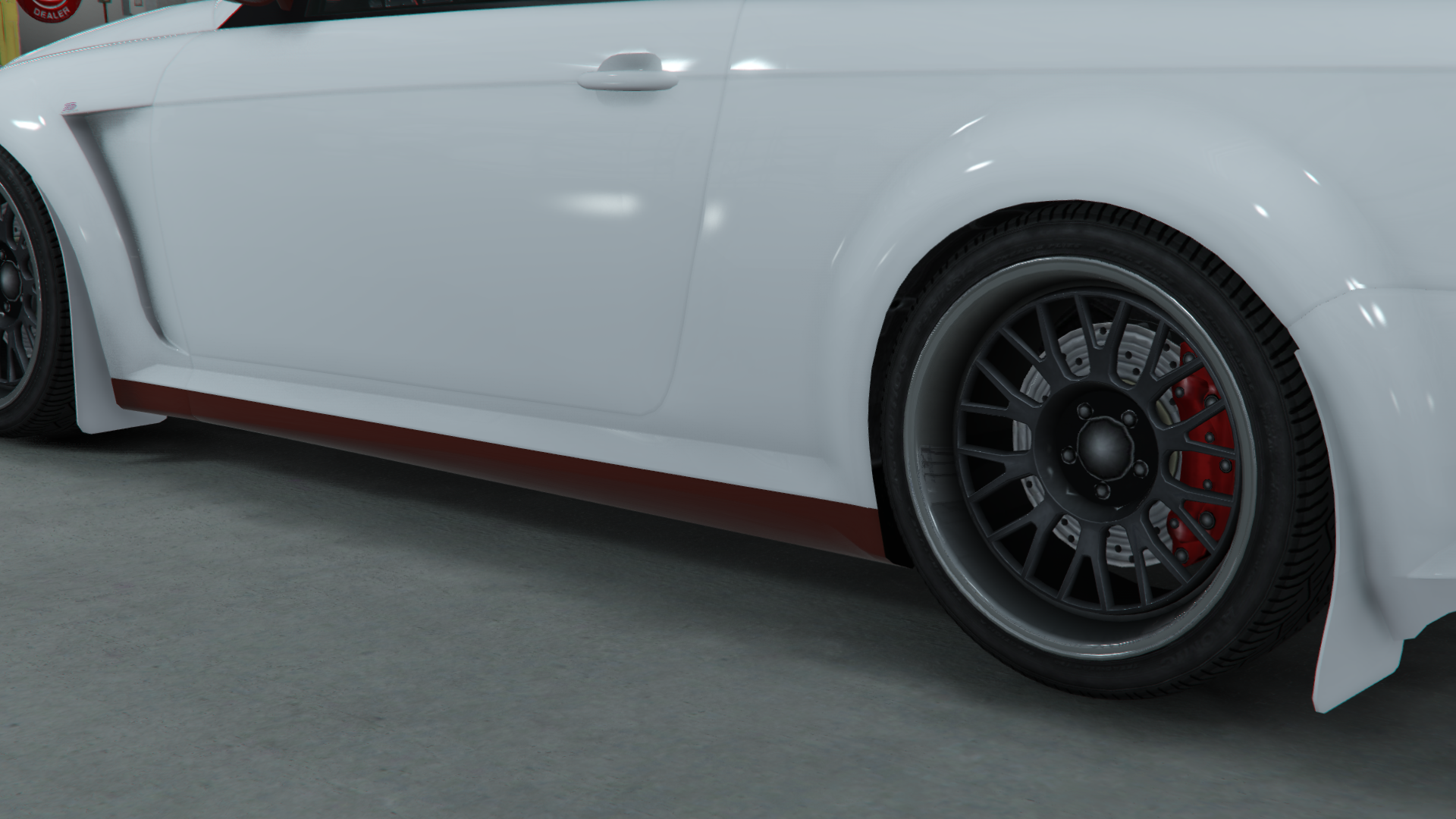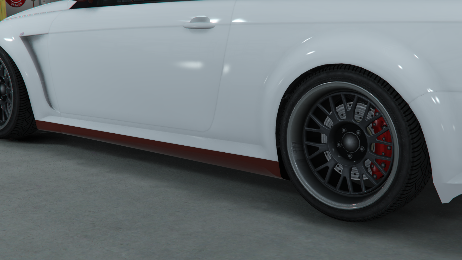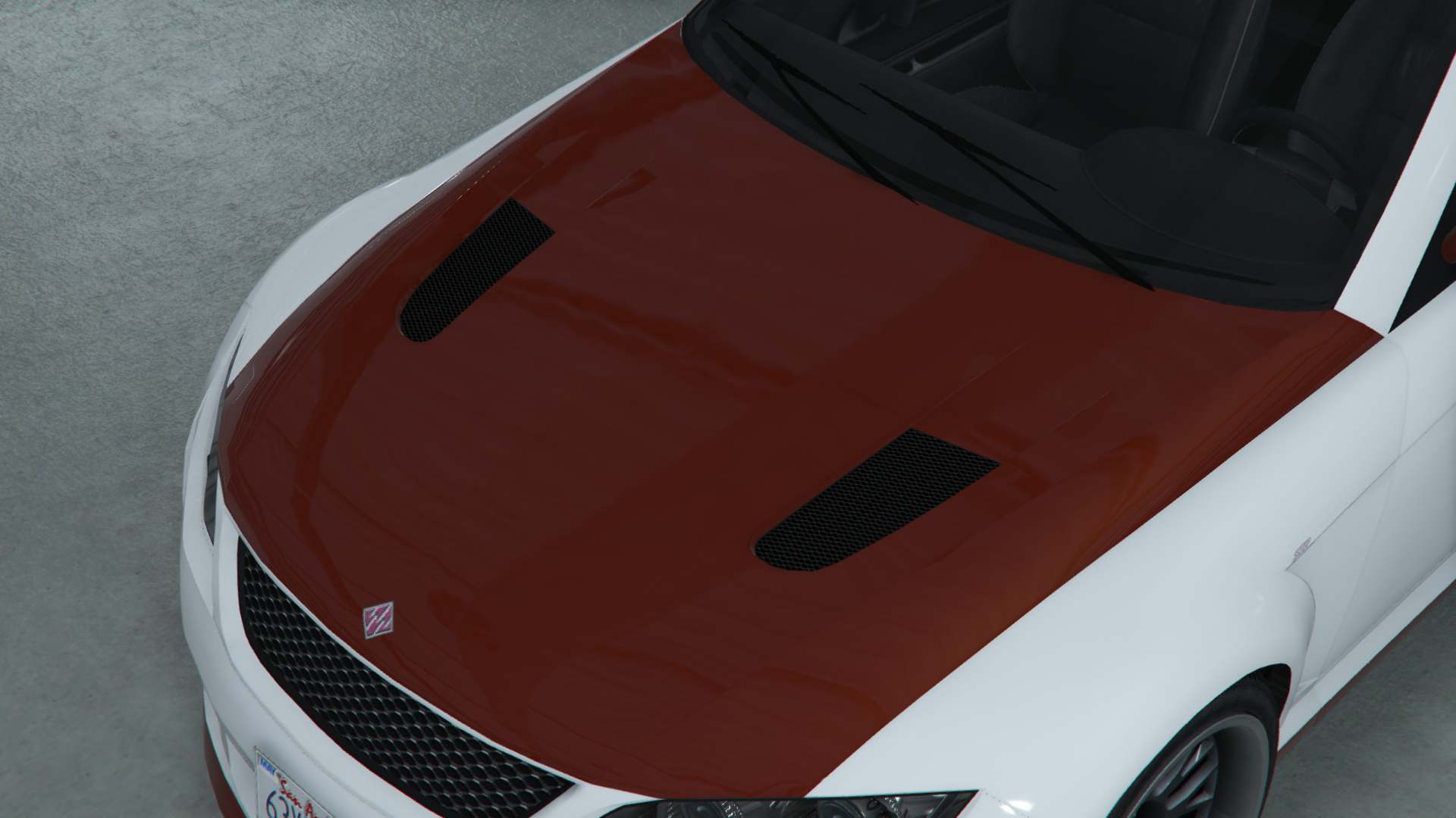 The car is prominently painted in a primary colour for the body and the interior stitching. The car also uses a different set of wheels, being identical to the "Cosmo" wheels available in Los Santos Customs.