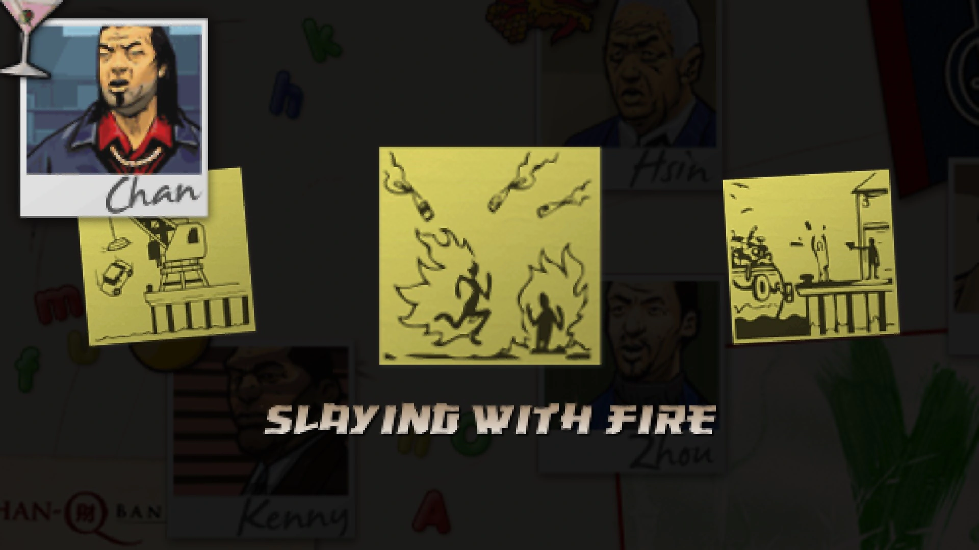 Slaying with Fire is a mission in Grand Theft Auto: Chinatown Wars given to protagonist Huang Lee by the Jaoming Family Triad underboss Chan Jaoming from the Videogeddon arcade in Chinatown, Algonquin, Liberty City.
