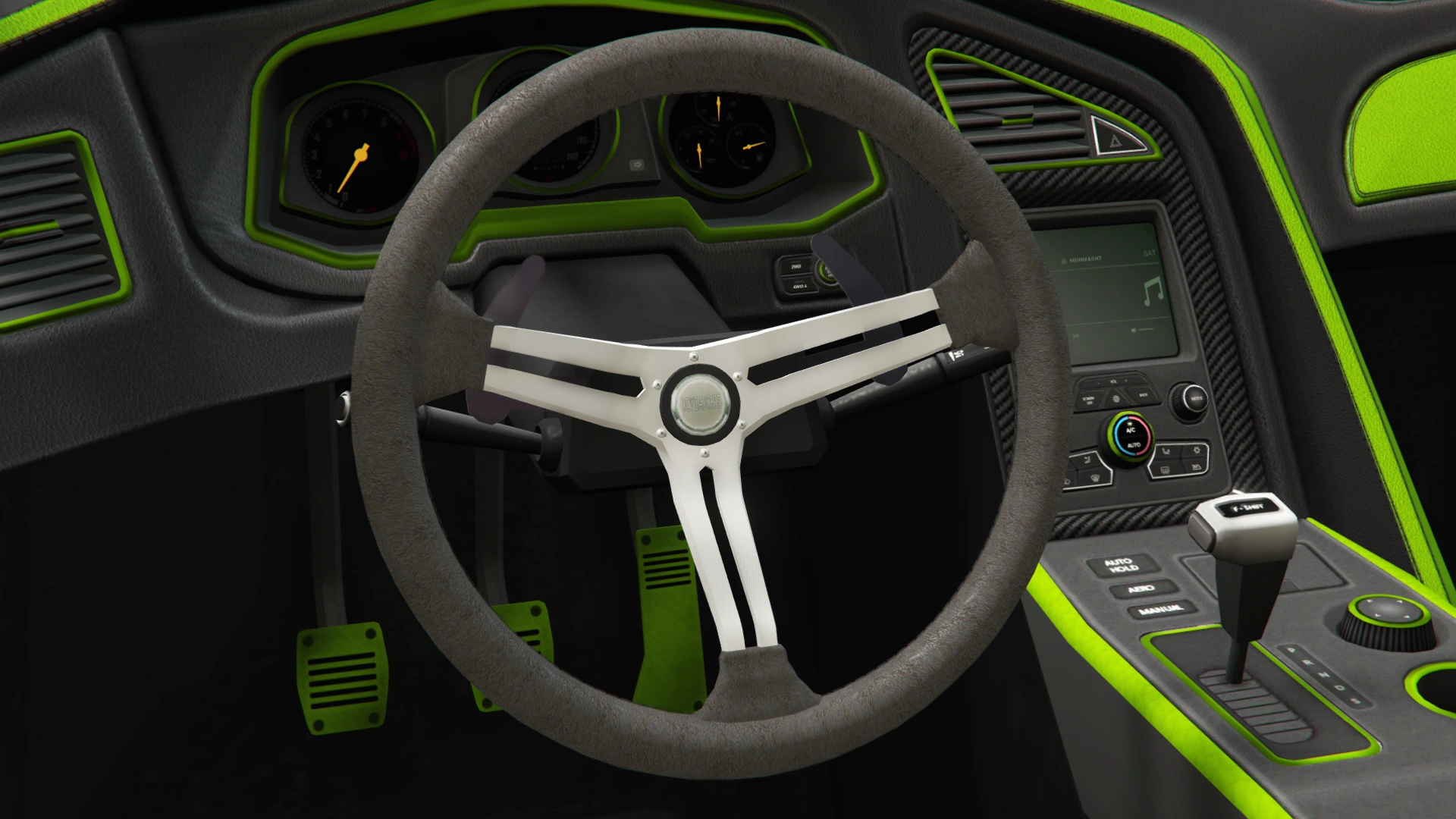 Colour distribution is more or less identical, where the primary colour is applied on the bodywork, rear panels and paddle shifters, while the secondary colour is applied on the interior stitching. A trim colour is also available for the dashboard panellings, surrounding of the dial cluster and aircon units, steering wheel, pedals, central section, doorcards and seats, as well as a dial colour. The vehicle retains the same wheel design as the standard model, but can also support a dedicated wheel colour (though only examples generated in the Content Creator may have a light blue colour).