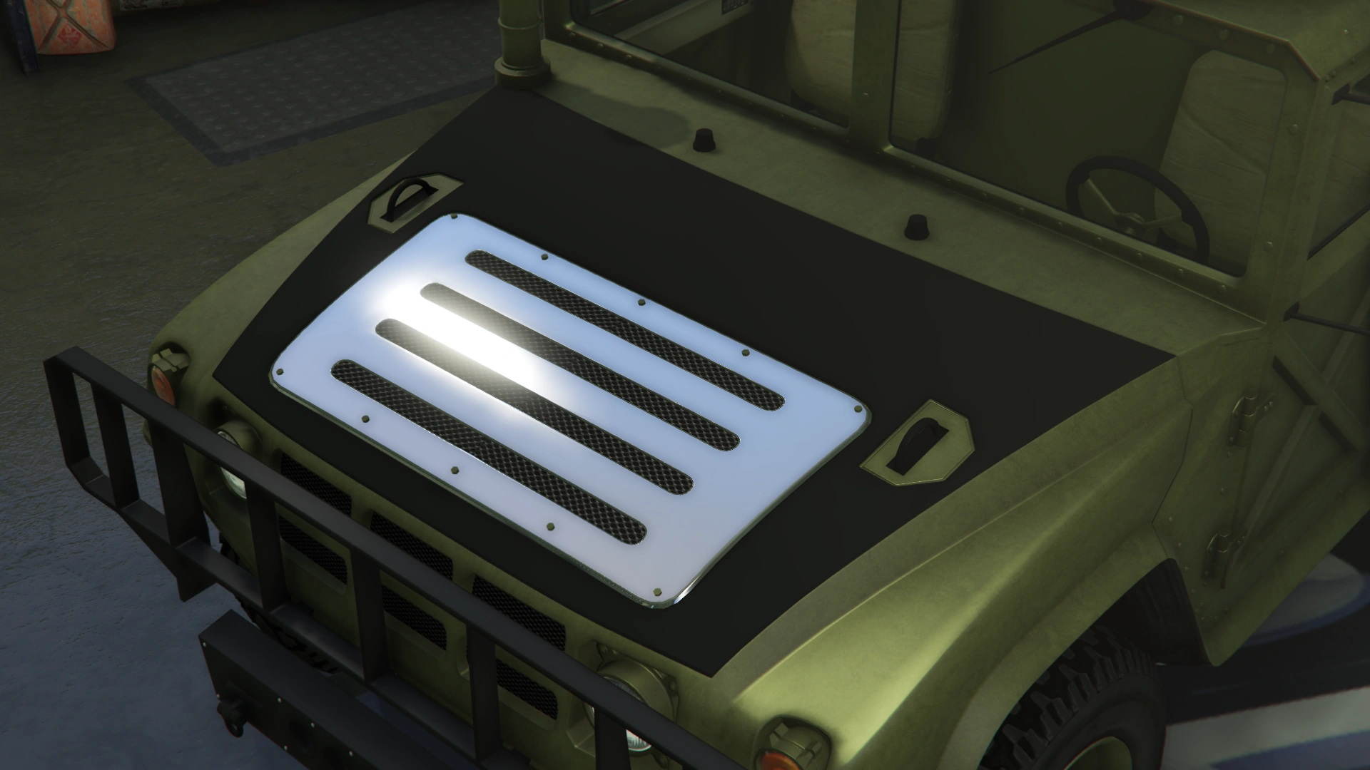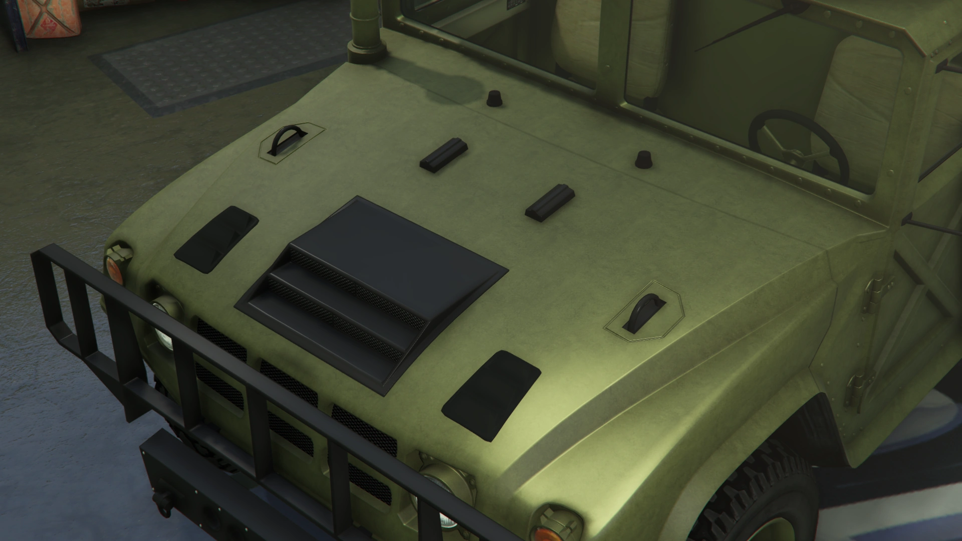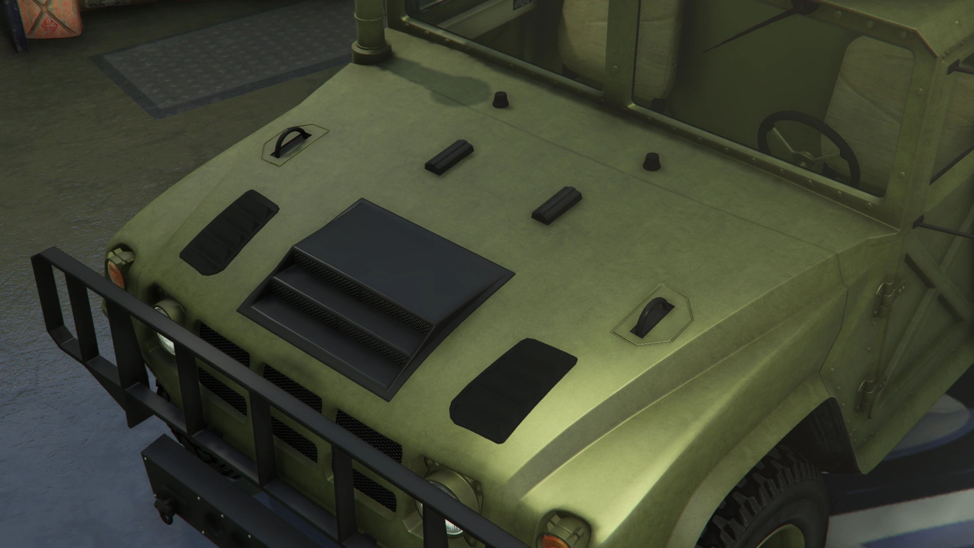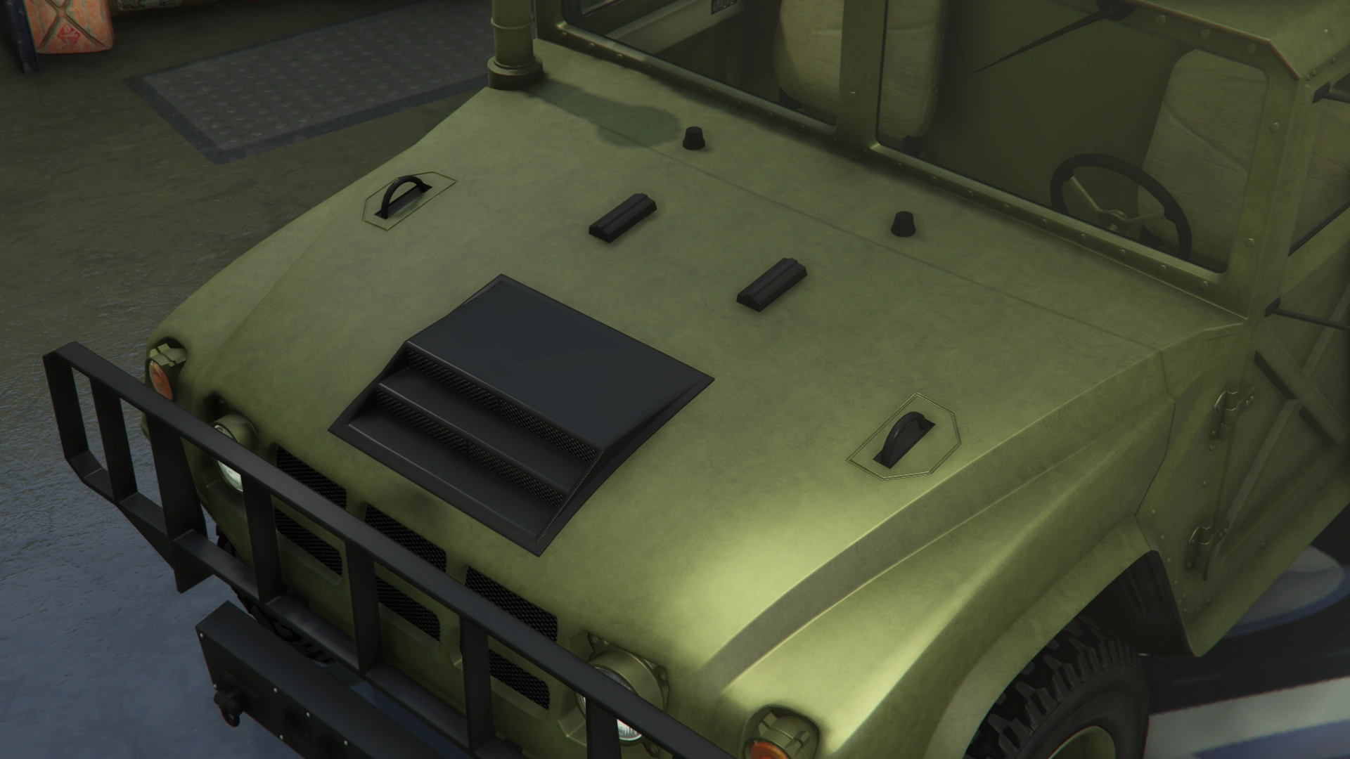 The Squaddie makes a return to Grand Theft Auto Online with the same layout as the beta model. However, its general design leans more towards the HMMWV/M1097 than the Hummer H2 (more similar to 3D Universe iterations of the Patriot), though still retaining the core body profile and dimensions of GTA V's Patriot, which is based on a H2.